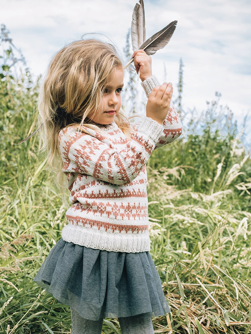 Barnegenser med mønster er en tidløs genser med klassisk mønsterstrikk, laget i Duo (55 % merinoull og 45 % bomull). Den kombinerer varme og pusteevne, og gir et komfortabelt plagg til aktive barn. Et flott basisplagg som kan brukes hele året.