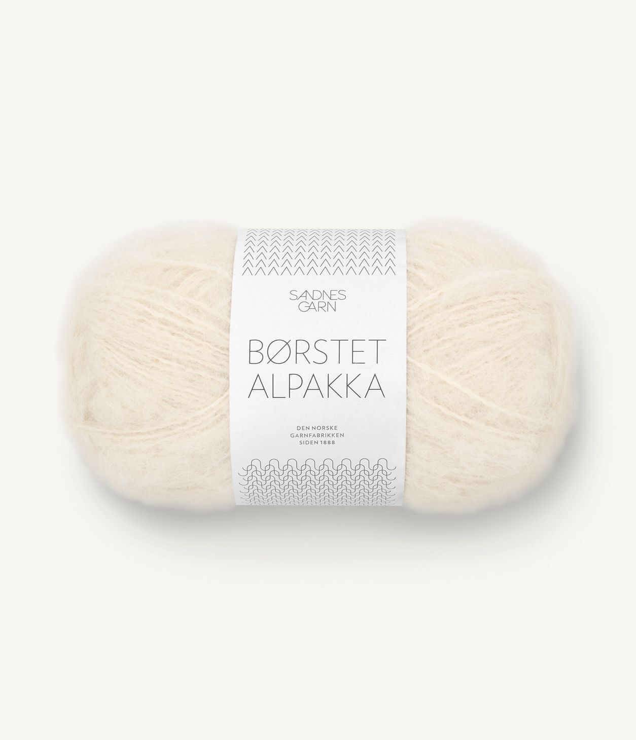 Børstet Alpakka består av alpakkafiber tvunnet sammen med en sterk nylontråd, og er ca tre ganger varmere enn vanlig ull. Børstet Alpakka fra Sandnes Garn er et mykt, lett og luftig garn med et loddent uttrykk.