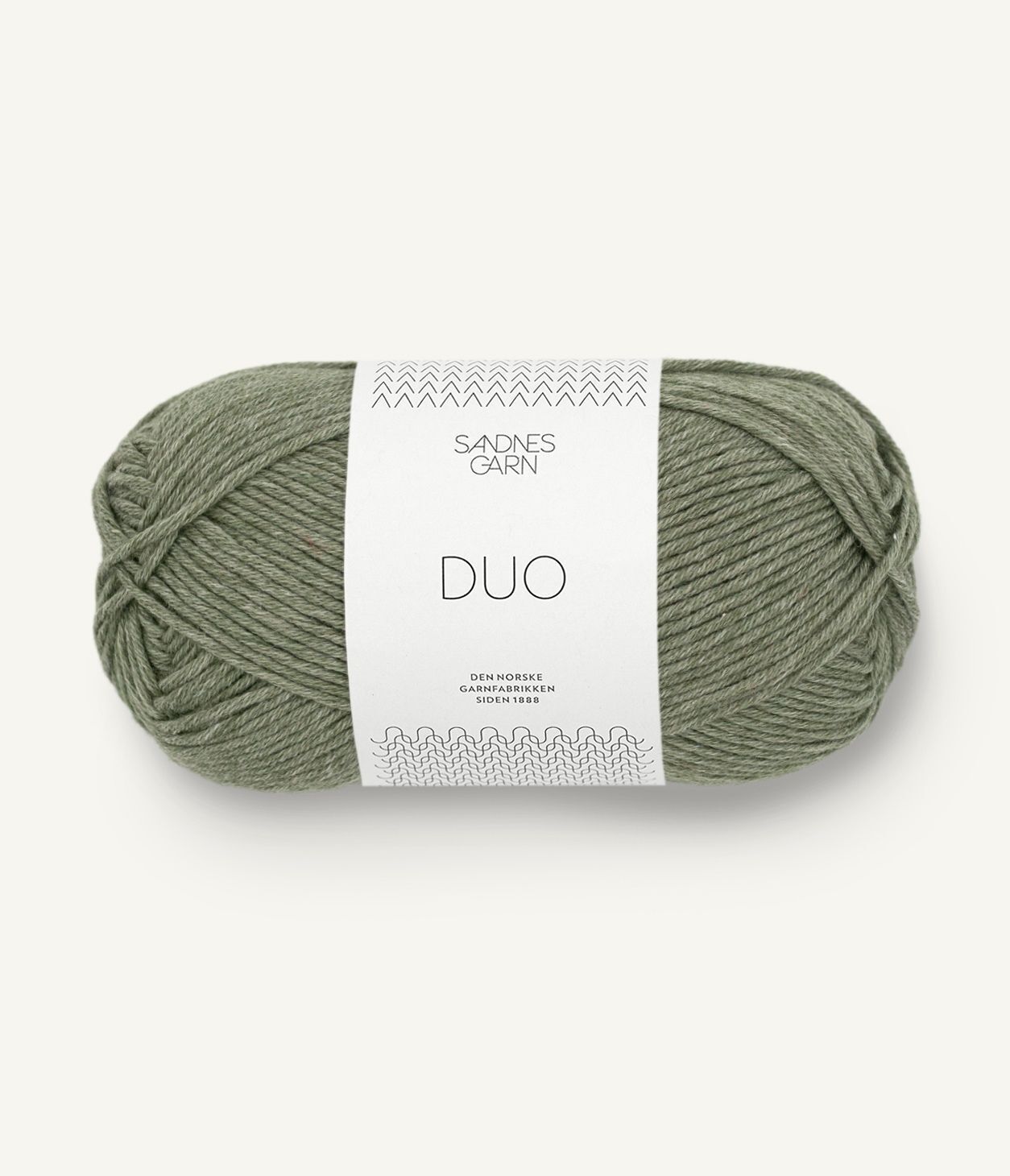 Duo er et veldig behagelig helårsgarn, og et godt alternativ til de som synes ull klør. Merino ullen gjør at garnet blir lettere, mer elastisk og isolerer bedre enn helt ren bomull. Blandingen av merinoull og bomull gjør denne kvaliteten til et lett og mykt garn som isolerer godt og ikke klør.