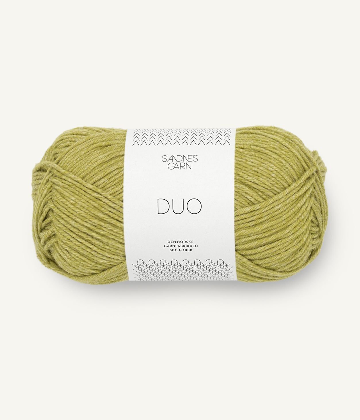 Duo er et veldig behagelig helårsgarn, og et godt alternativ til de som synes ull klør. Merino ullen gjør at garnet blir lettere, mer elastisk og isolerer bedre enn helt ren bomull. Blandingen av merinoull og bomull gjør denne kvaliteten til et lett og mykt garn som isolerer godt og ikke klør.