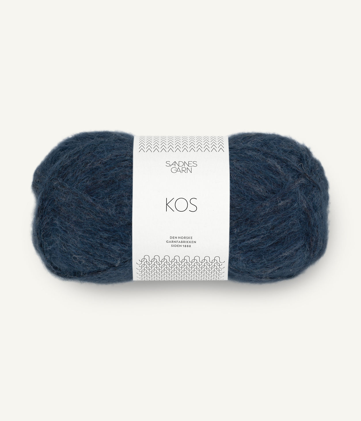 Kos består av alpakkafiber som sammen med ull blir blåst inn i en nylonstrømpe. Dette gir et mykt, lett og luftig garn.