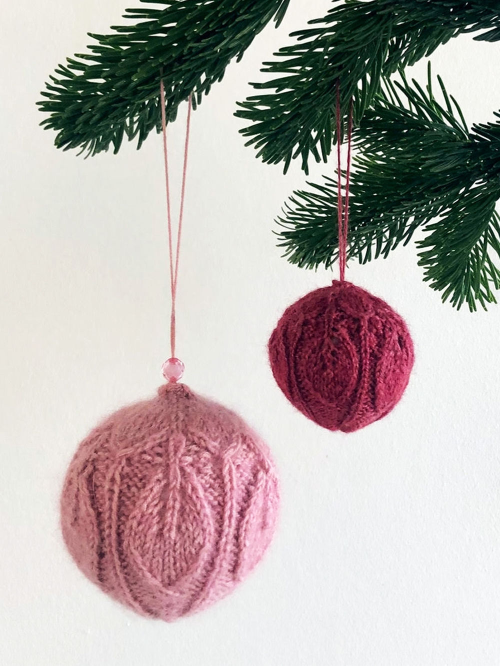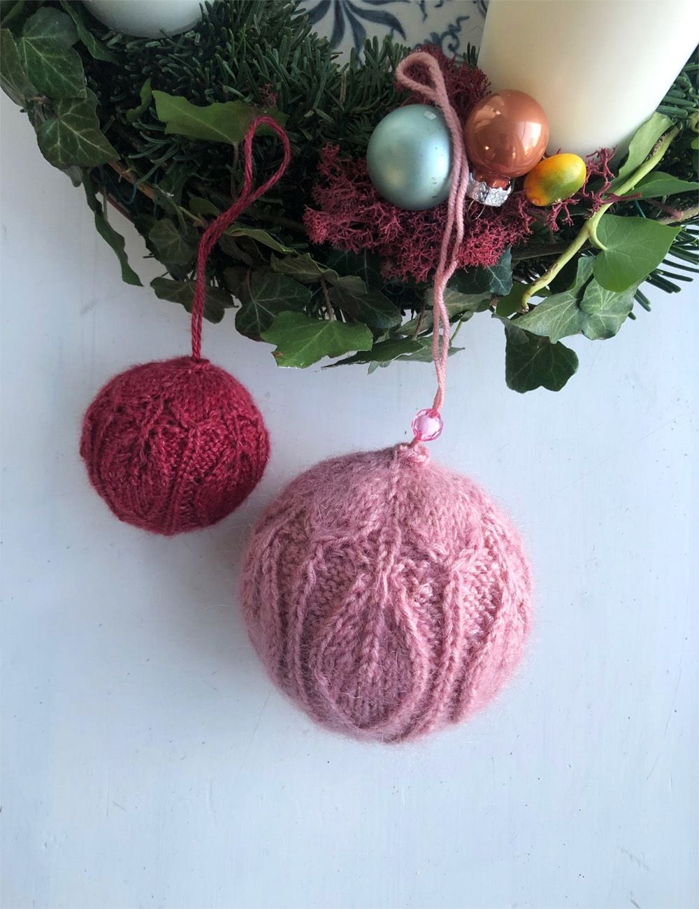 Stor julekule (med eller uten glitter): Strømpepinner nr. 3,5, hvis du strikker rundt. Pinner nr. 3,5, hvis du strikker frem og tilbake.