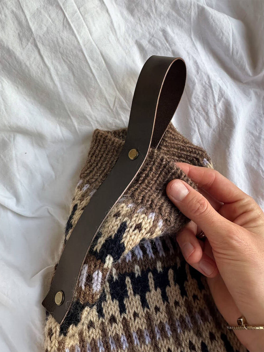Vær oppmerksom på at mønsterstrikk ofte må strikkes på en 0,5-1 mm tykkere pinnestørrelse enn ensfarget glattstrikk. Strikk derfor en prøvelapp i både mønsterstrikk og ensfarget glattstrikk før du går i gang.