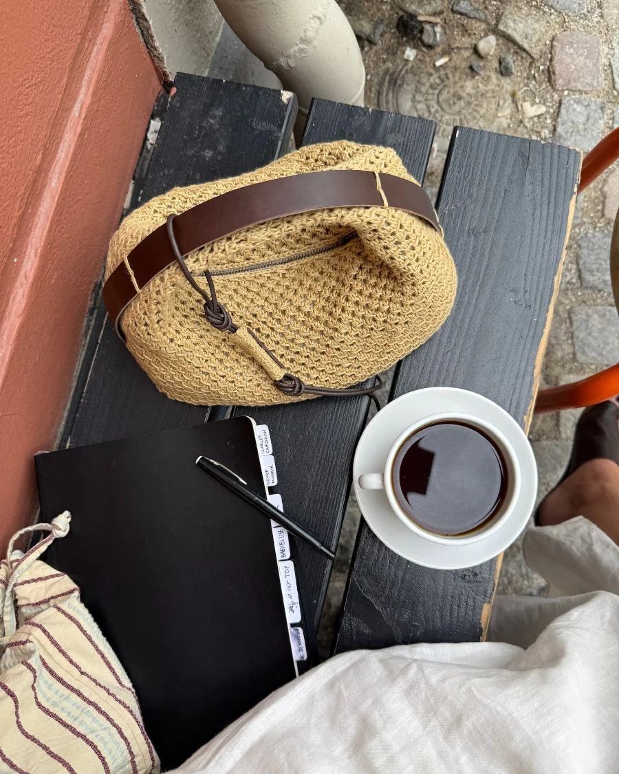 Juno Bag strikkes fra bunnen og opp i et elegant hullemønster.