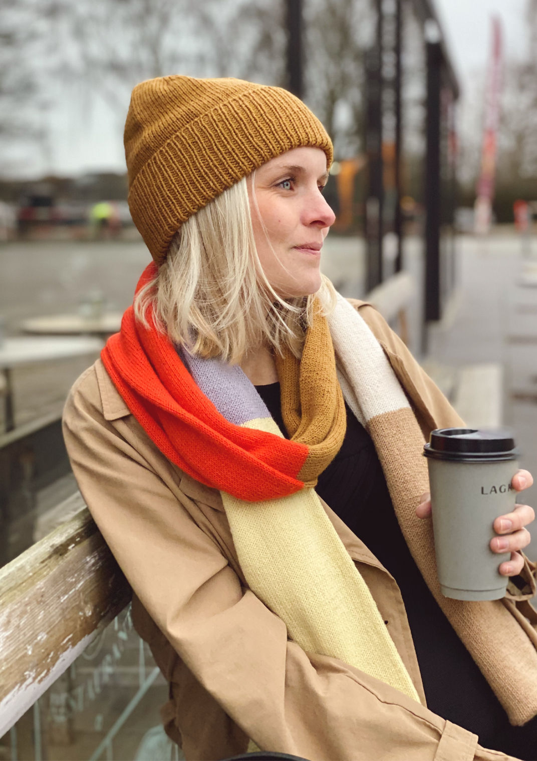 Størrelser: Lua passer til hodeomkrets 54-58 cm. Skjerfet er knapt 2 m langt og 23 cm bredt