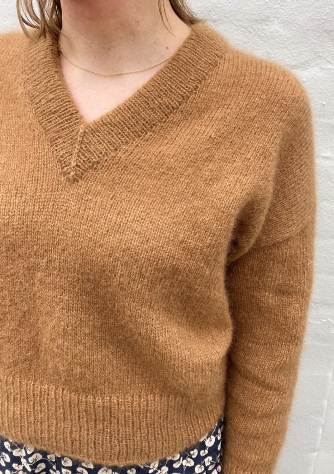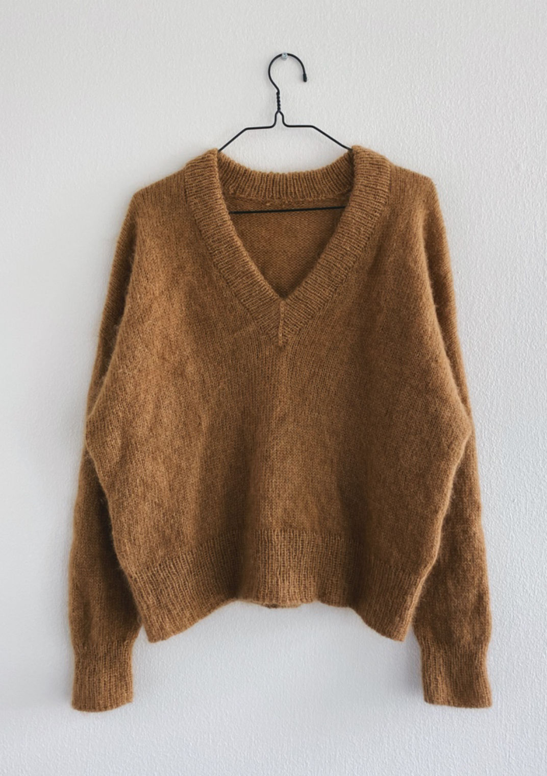 Stockholm Sweater V-neck strikkes ovenfra og ned i glattstrikk i dobbel tråd silk mohair.