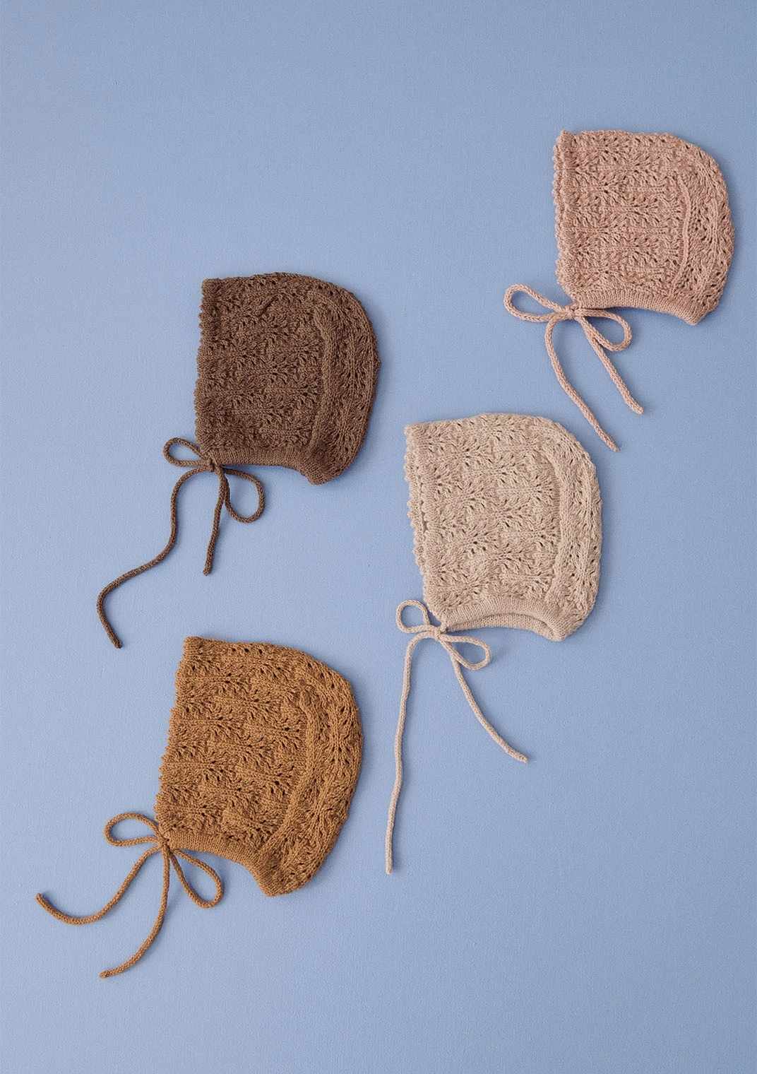 Sidene strikkes sammen med bakhodet, og det strikkes tilslutt opp masker til løpegang langs halskanten.