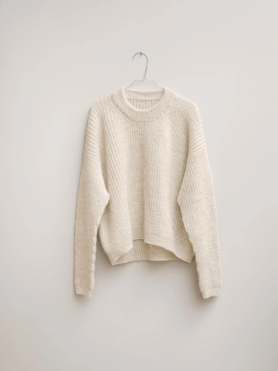 Genseren strikkes ovenfra og ned i halvpatent med 1 tråd Tynn Peer Gynt og 1 tråd Tynn Silk Mohair
