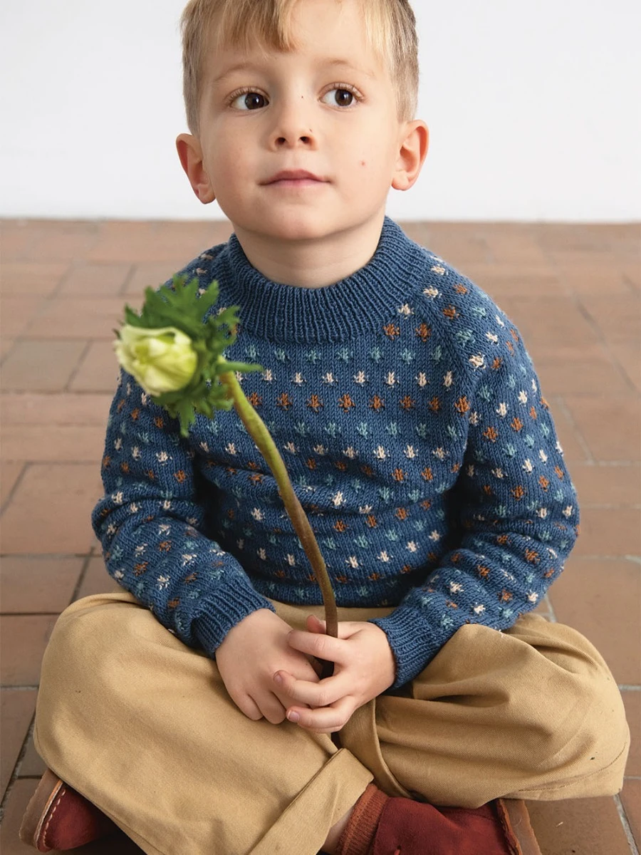 Ermene strikkes først rundt i diagram. Deretter strikkes for- og bakstykket rundt i diagram før det felles masker i hver side til ermehull. Videre settes ermene inn på for- og bakstykket. Det fortsettes med diagram og felles til raglan. Halskanten strikkes til slutt og brettes dobbel mot vrangsiden.