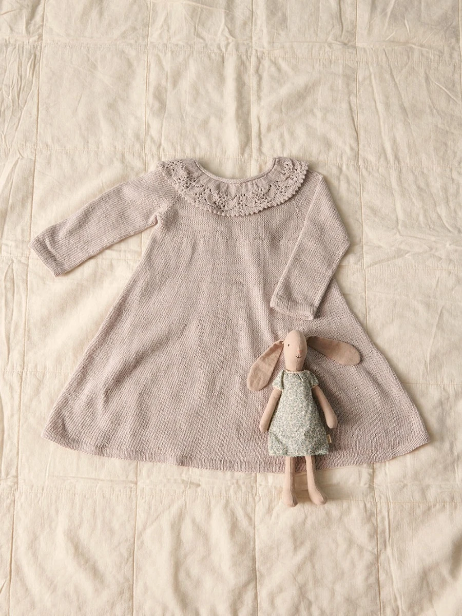 Først strikkes det frem og tilbake til splitt midt bak, og vendepinner med GSR for å forme en dypere halsutringning foran, samtidig som det økes til raglan. Etter vendepinner, strikkes arbeidet rundt. Nede på skjørtet og ermene strikkes det brettekanter. Det strikkes i-cord kant rundt halsen, og kragen strikkes til slutt.