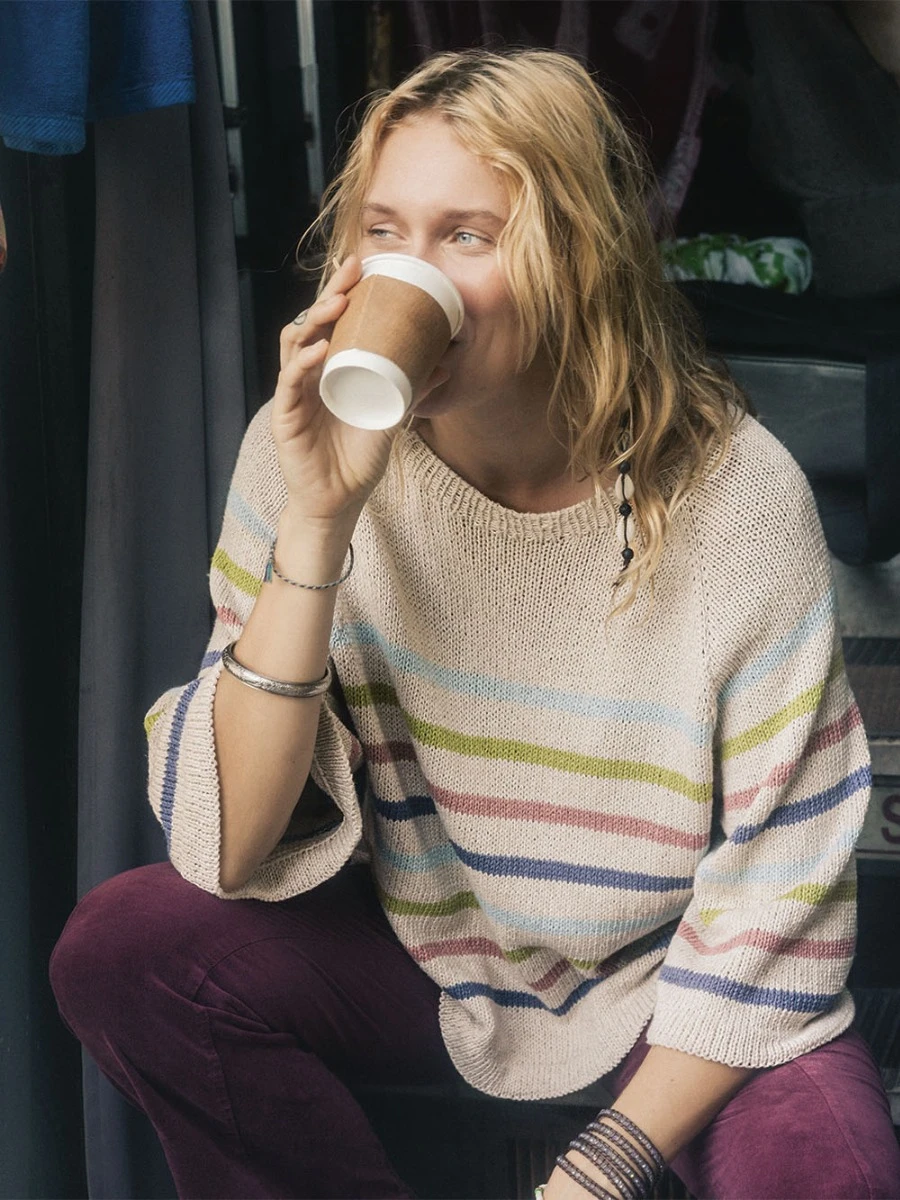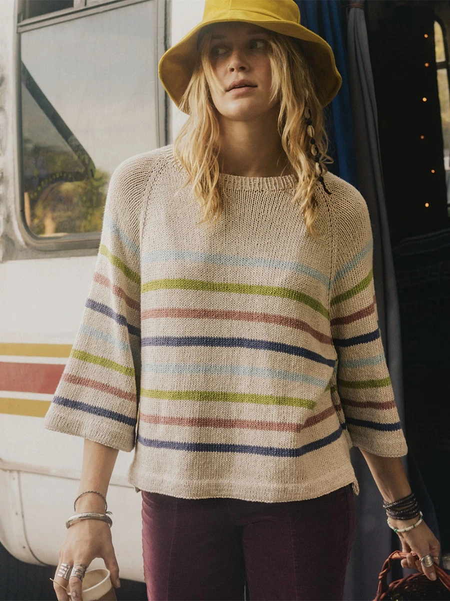Genseren strikkes ovenfra og ned med stripemønster og økninger til raglan i Line.