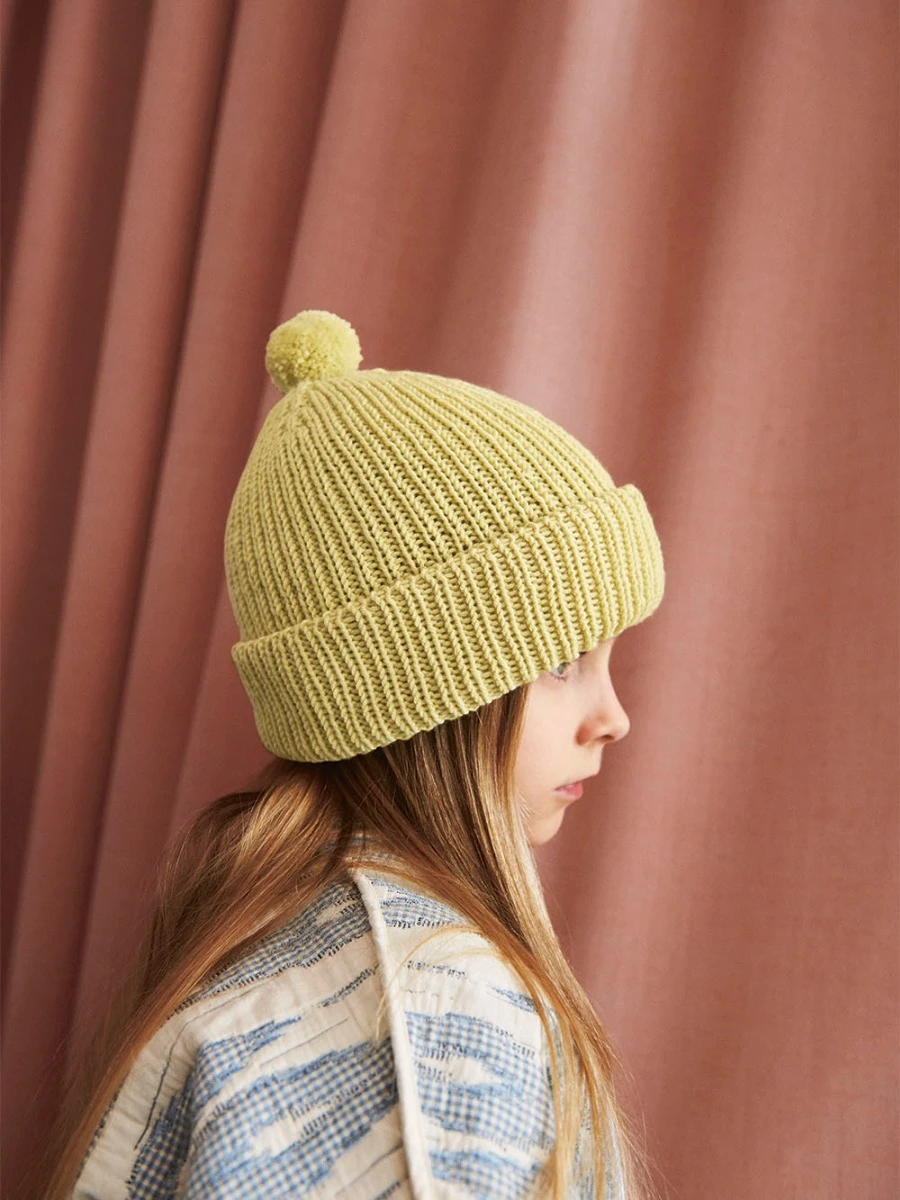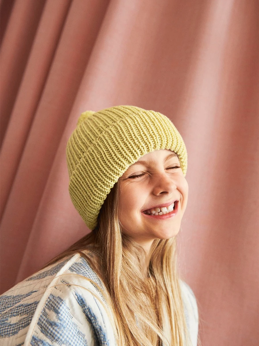 Først strikkes det rundt til en dobbel brettekant. Deretter vendes arbeidet og det strikkes videre rundt før det felles masker på toppen.