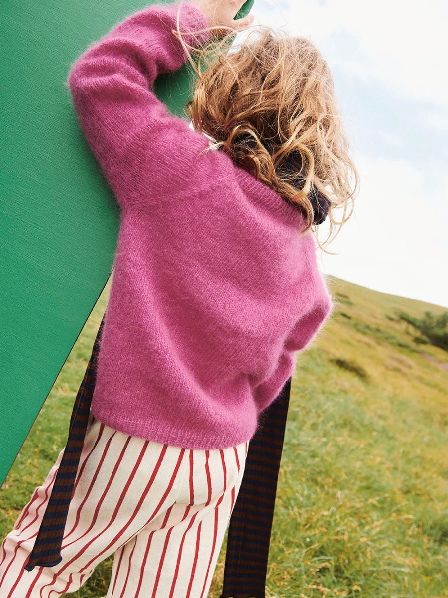 (B) Genseren strikkes nedenfra og opp med 2 tråder i Tynn Silk Mohair