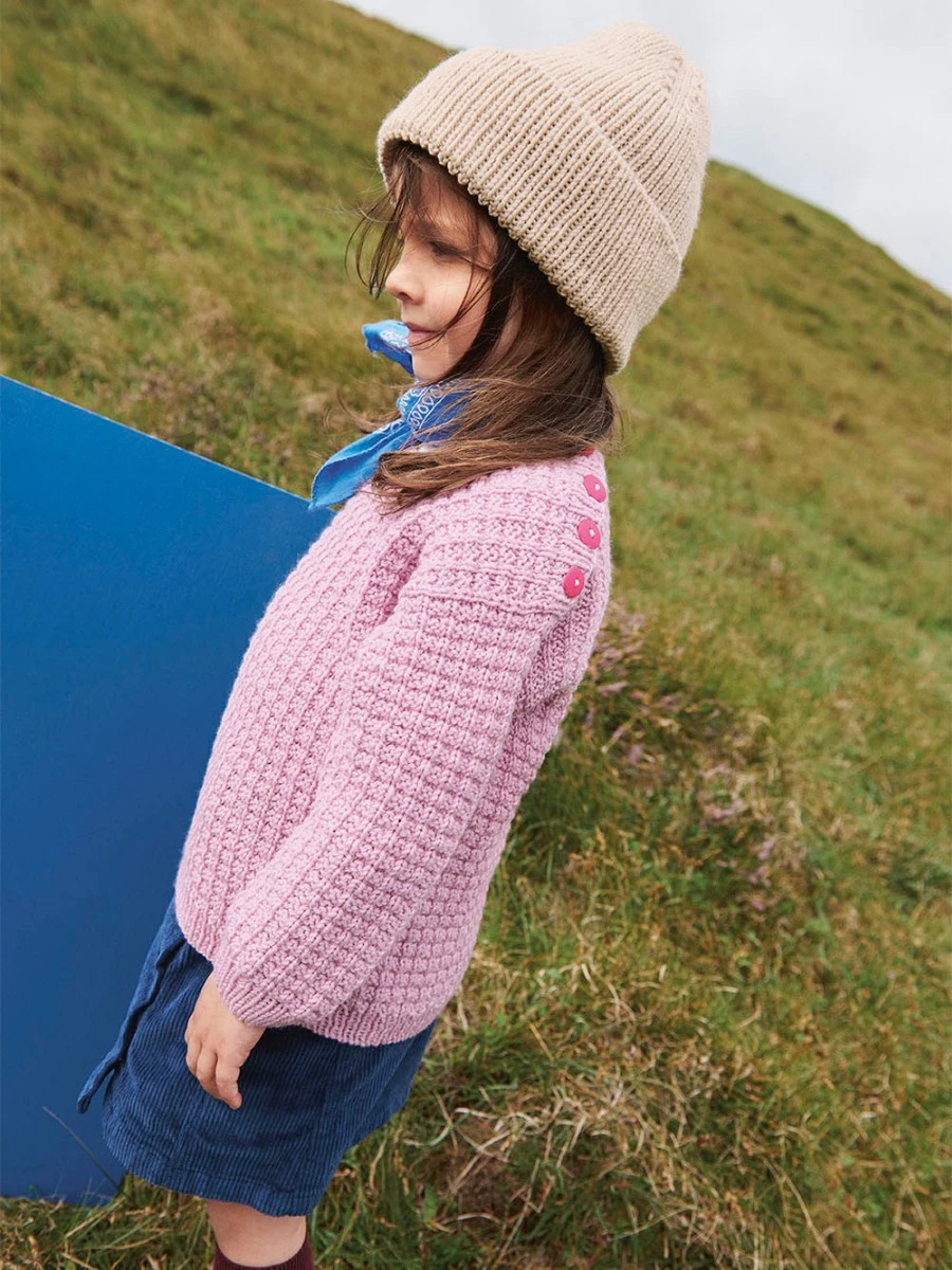 Luen strikkes nedenfra og opp i ribb 1 rett, 1 vrang i Double Sunday