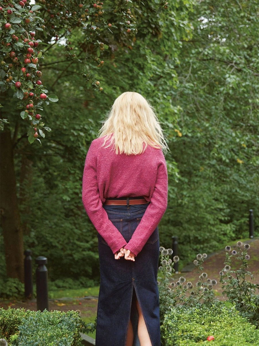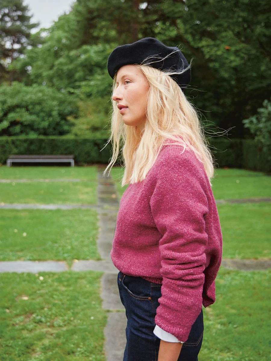 Genseren strikkes ovenfra og ned i Tweed Recycled.