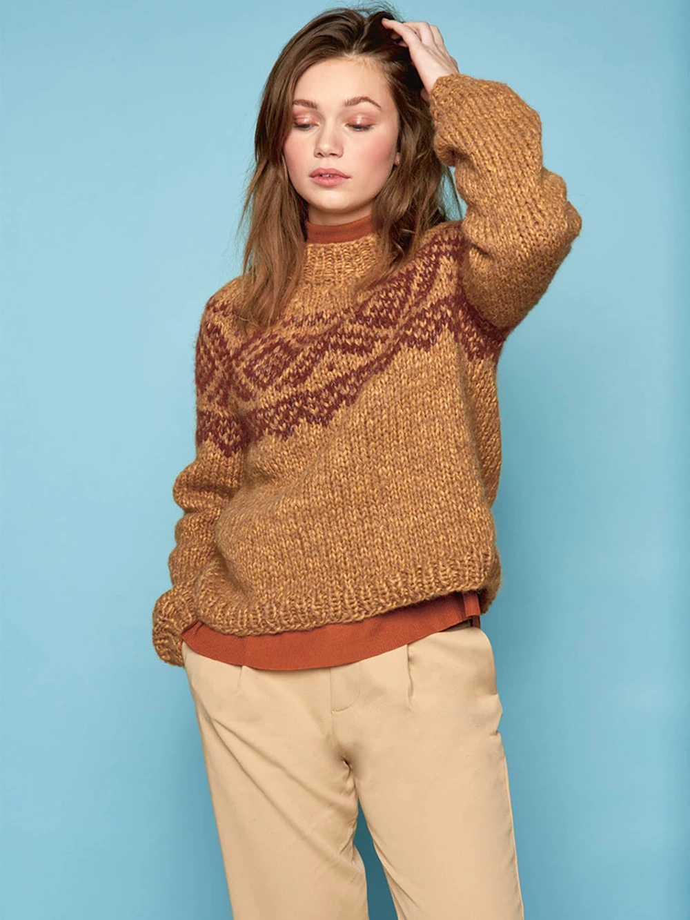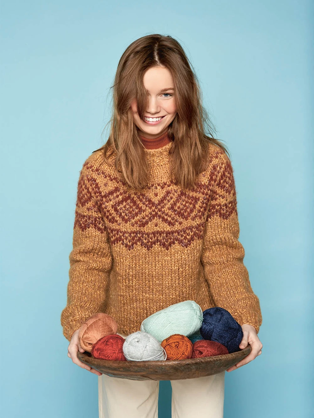 Oversize genser med rundfelling, strikket med 1 tråd Børstet Alpakka og 1 tråd Kos