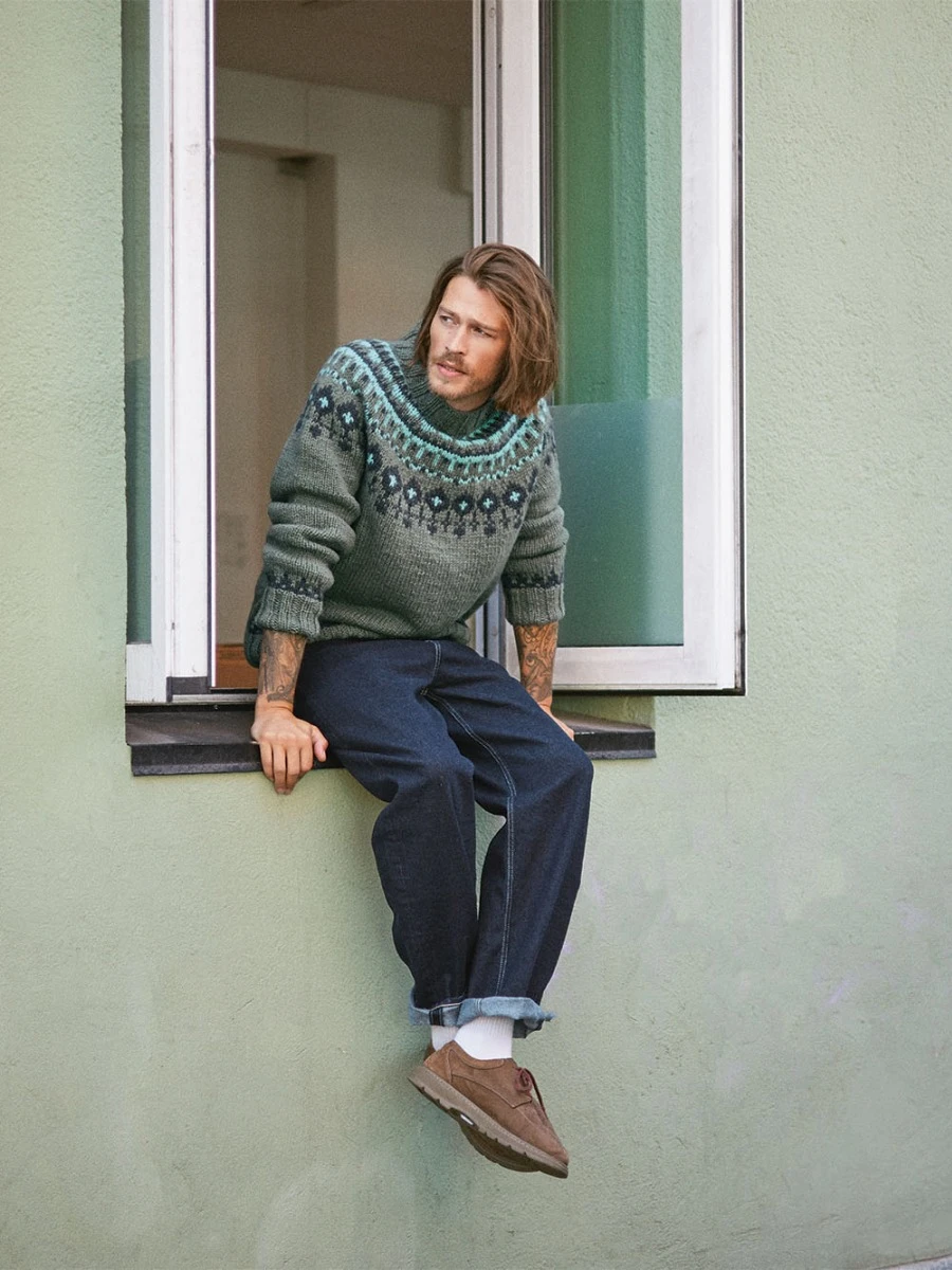 Genseren strikkes ovenfra og ned i Fritidsgarn.