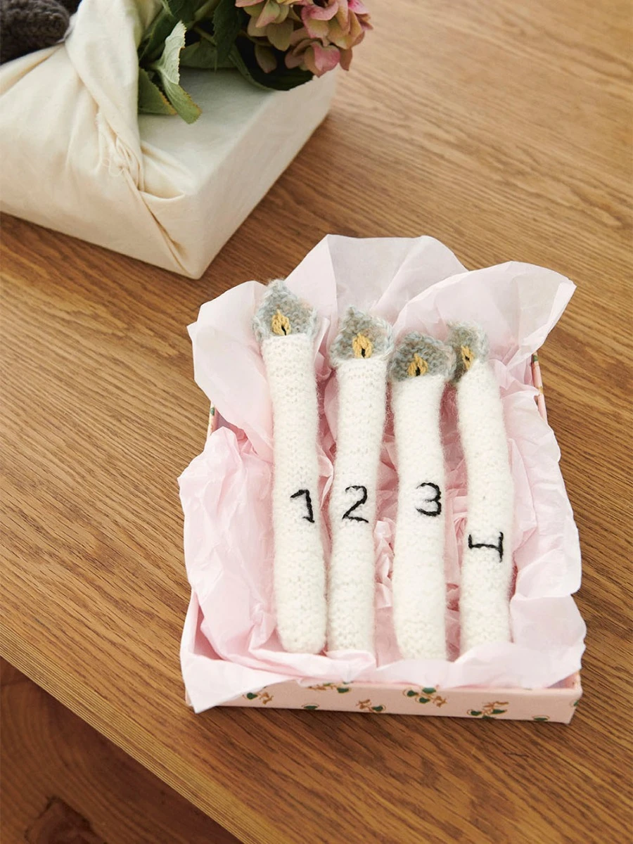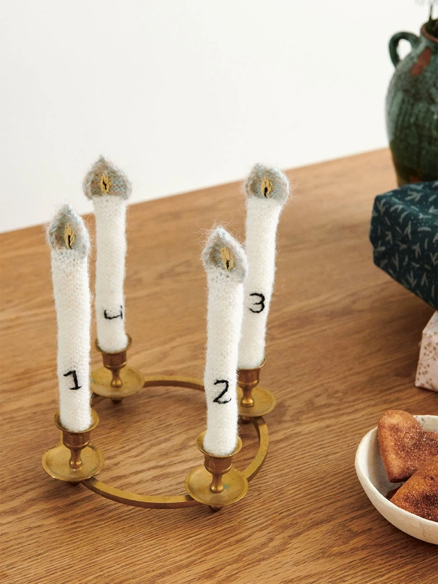 Et strikket stearinlys som vil pynte opp hjemmet i julen. Strikket i Tynn Peer Gynt og Tynn Silk Mohair.