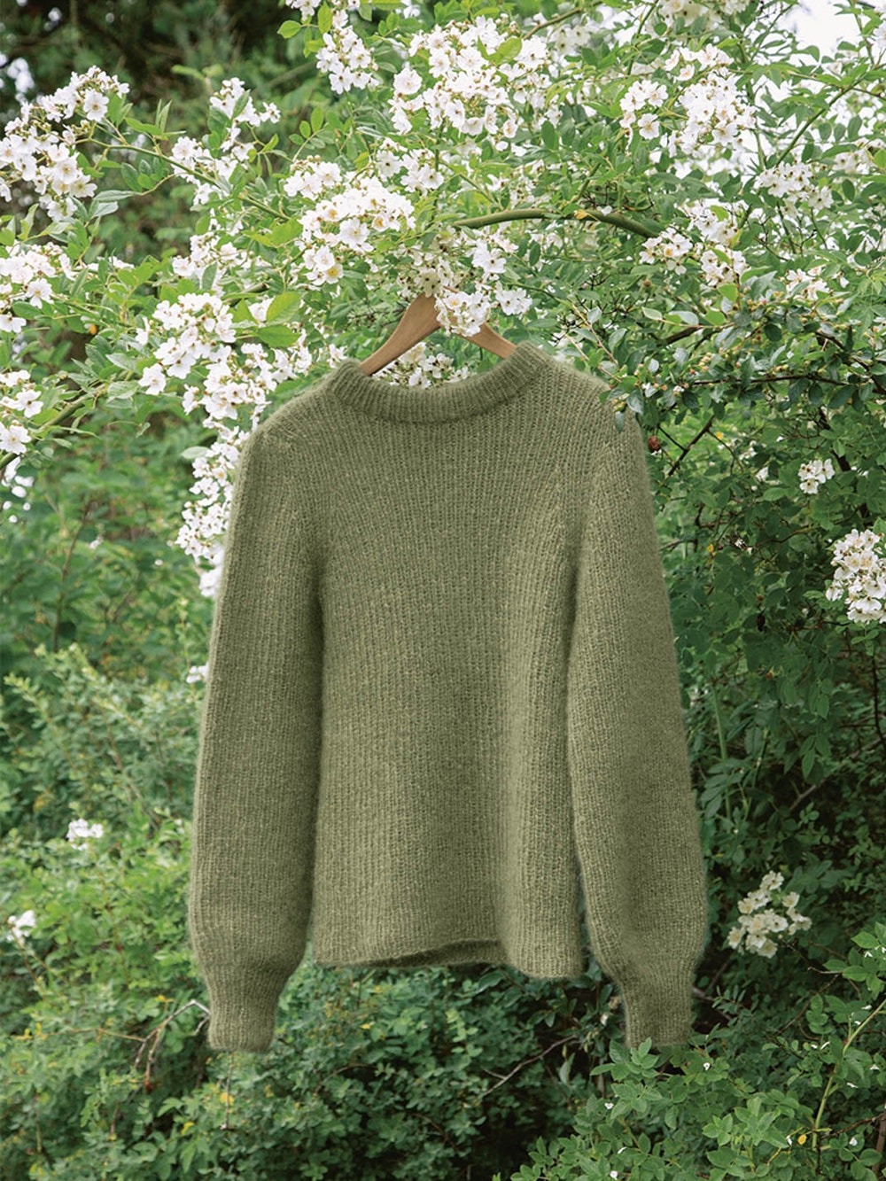 Nydelig raglangenser med ermetopp, strikket i Silk Mohair dobbeltråd. Strikk den i din favorittfarge!