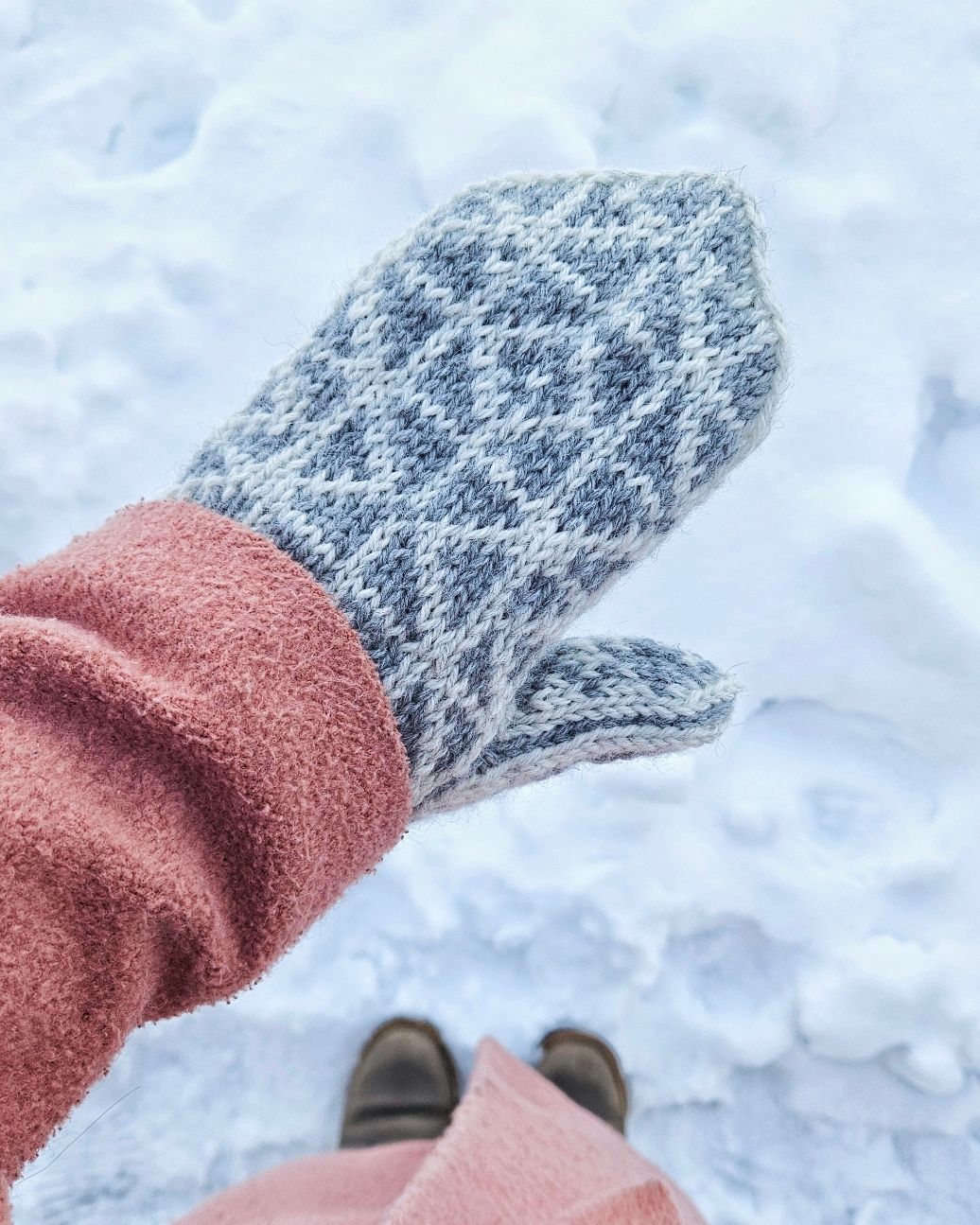 Geometrivotten er en vott strikket med morsomme geometriske mønster. De strikkes i Peer Gynt – garn som gir varme, struktur og slitestyrke. En perfekt oppskrift for deg som vil ha ekte vinterstemning på pinnene