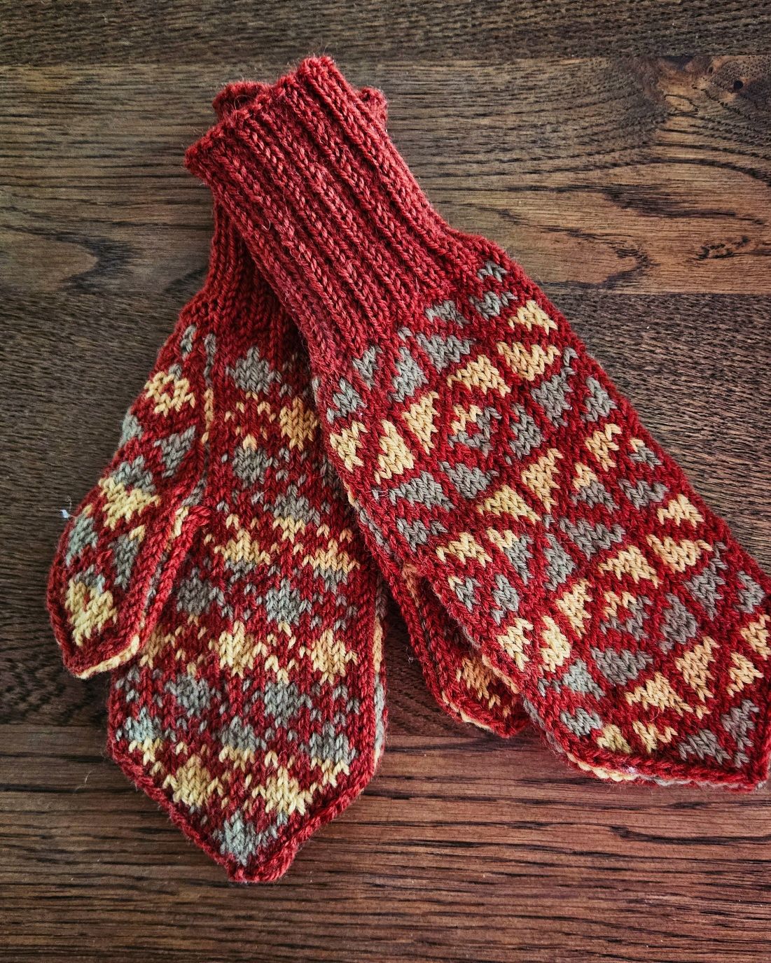 - Strikkefastheten for modellvottene var 22 masker over 10 cm.