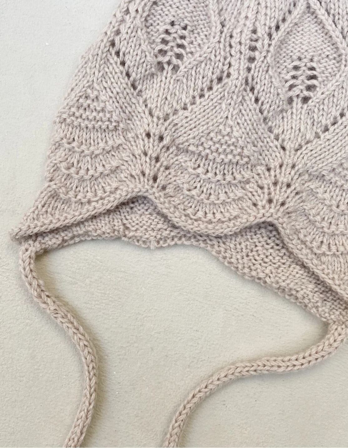 Når luen er strikket, hentes masker opp for å lage en snor. Det strikkes i-cord snor som knyting.