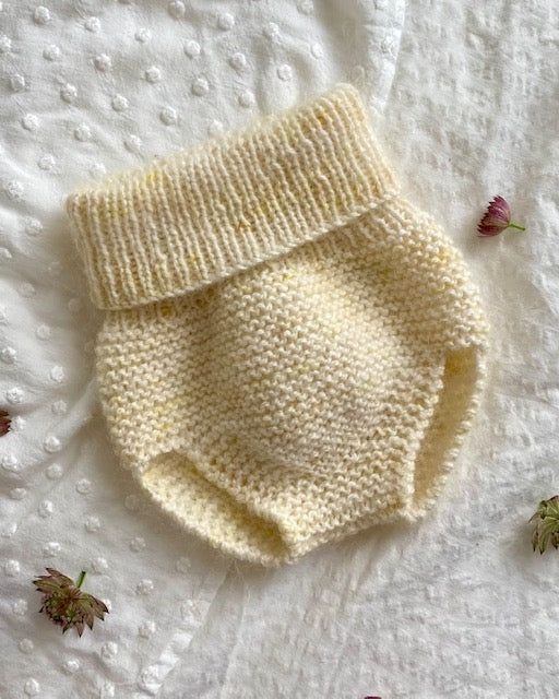 Fagerborg bloomer chunky strikkes nedenfra og opp i rillestrikk. Først strikkes nedre del av forstykket. Så plukkes det opp masker og nedre del av bakstykket strikkes. Arbeidet samles så på rundpinne og strikkes rundt i rillestrikk med en forhøyning bak for god passform. Til slutt strikkes en høy vrangbord som linning.