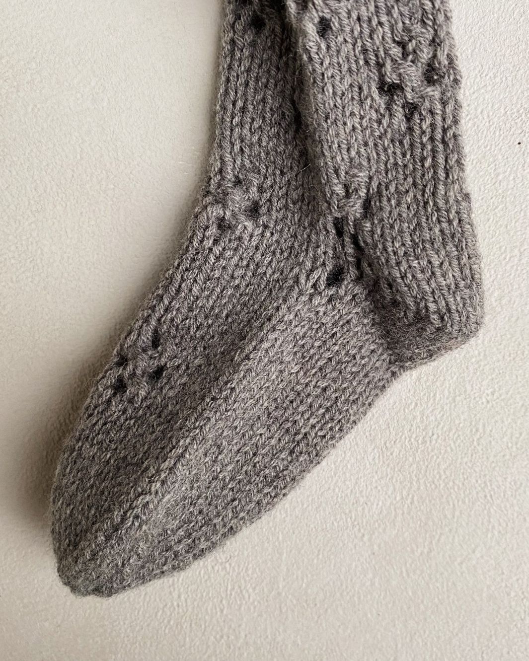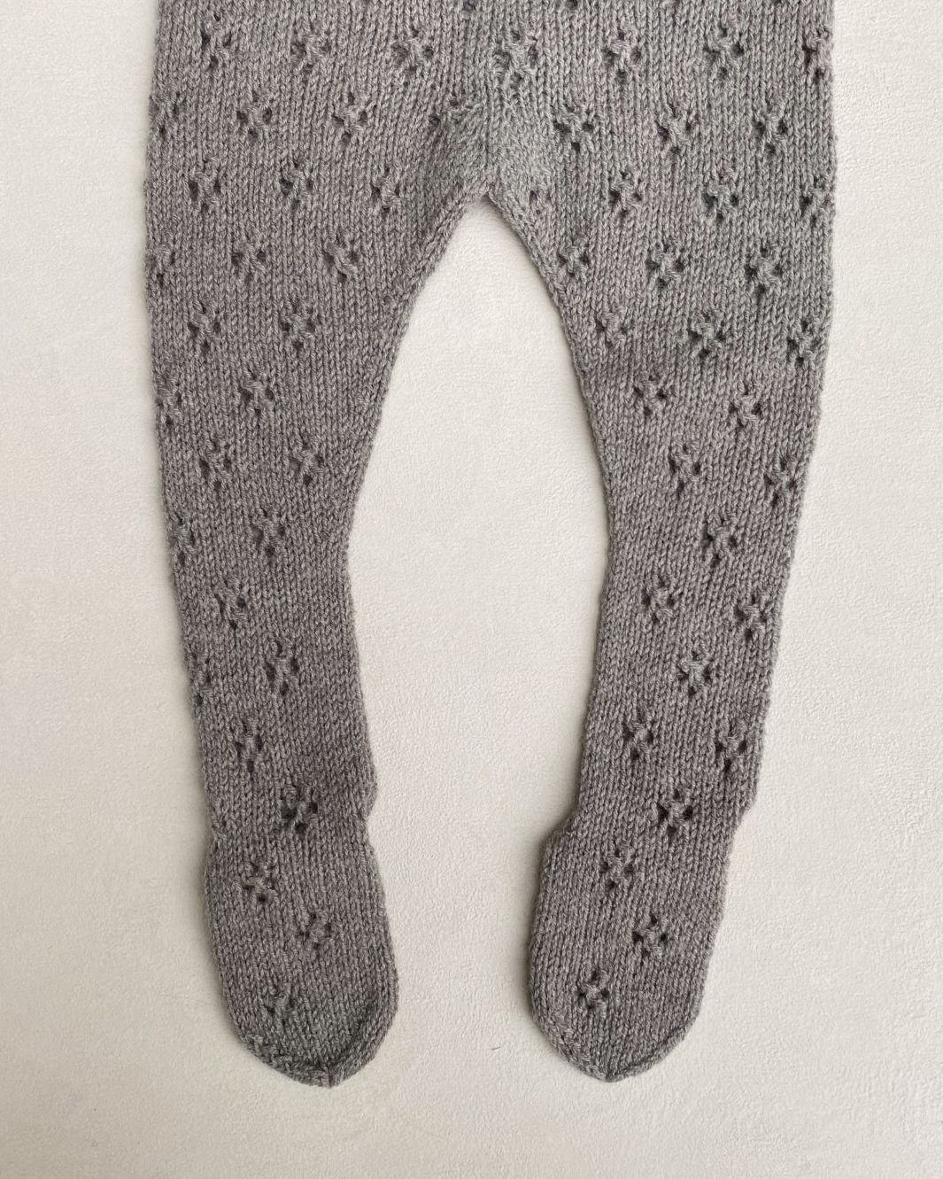 Strømpebuksene på bildet er strikket i Merino – Støvet Elg