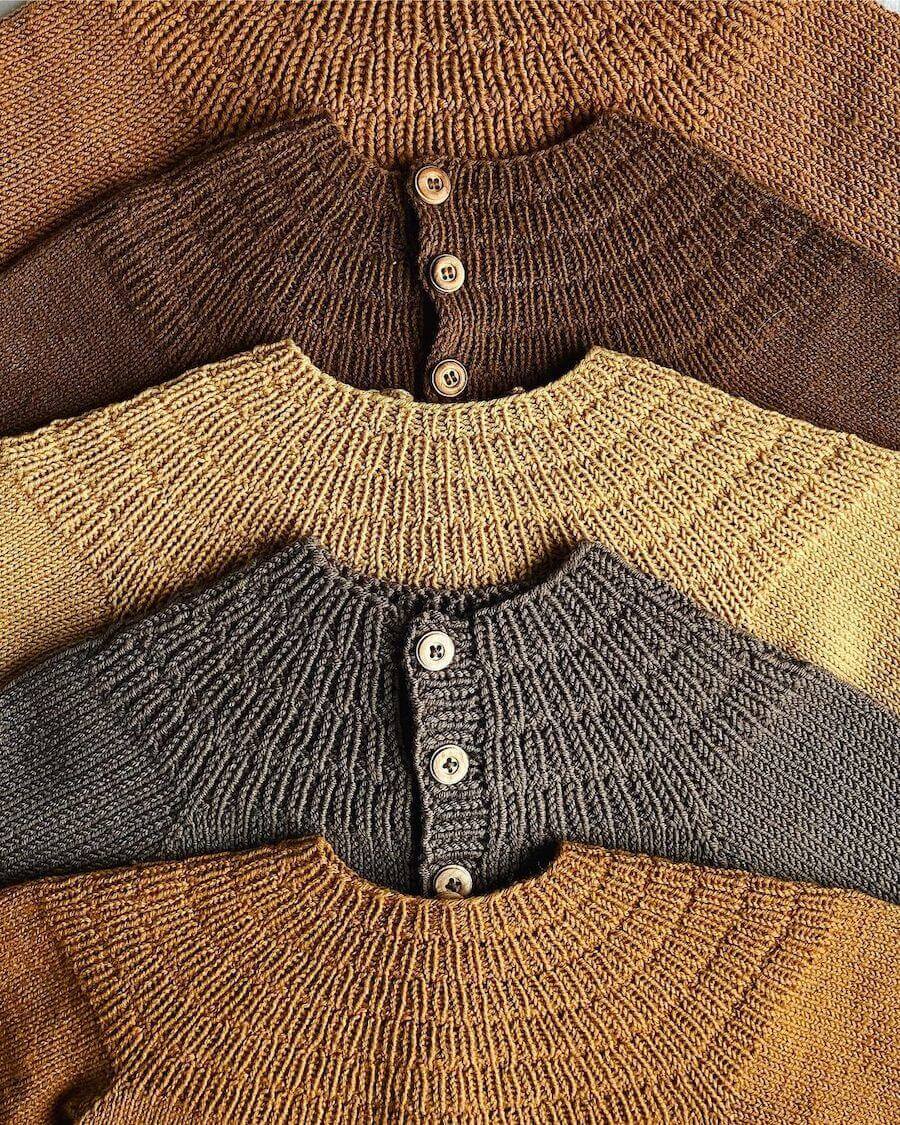 Materialer: 100 (100) 100-150 (150) 150 (200) g Sunday fra Sandnes Garn (50 g = 235 m), 4 (4) 5 (5) 5 (5) knapper (ø = 10 mm)