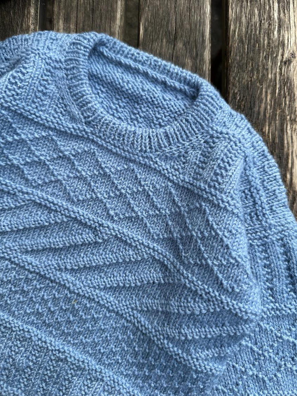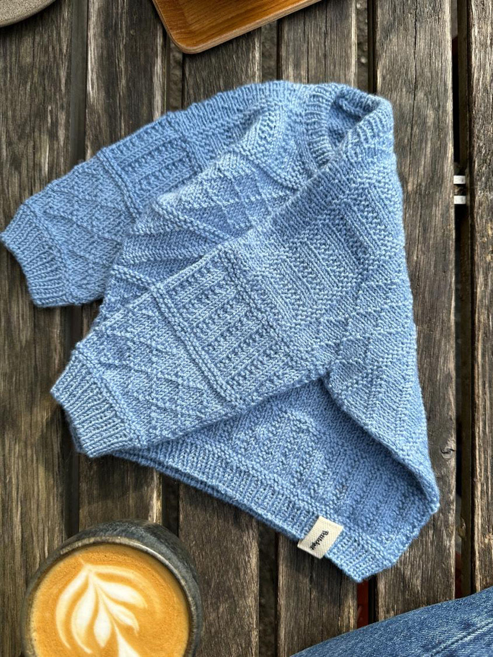 Storm Sweater Baby strikkes ovenfra og ned i strukturstrikk.