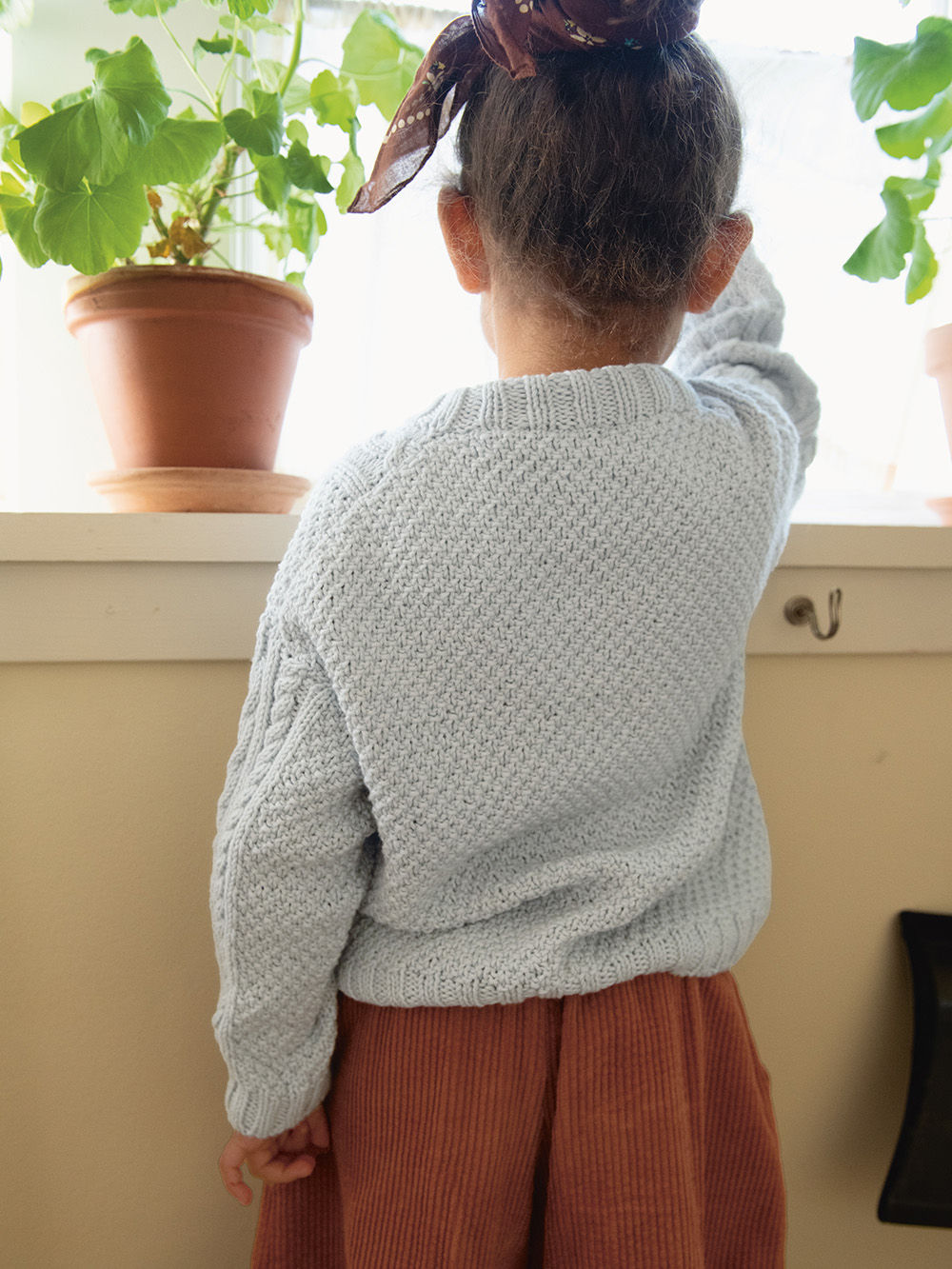| Teknikk: | Flette, Ovenfra og ned, Strukturstrikk |