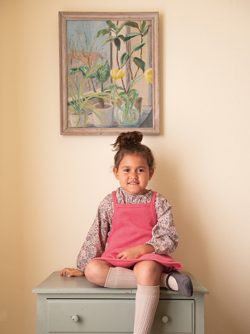 Først strikkes forstykket frem og tilbake med økninger. Deretter strikkes bakstykket på samme måte, før arbeidet samles og det strikkes rundt med økninger. Skjørtet avsluttes med en glattstrikket kant som felles av med heklenål. Ermekanter og stropper strikkes til slutt, og felles av på samme måte. Man kan velge å strikke stroppene med eller uten knapphull.