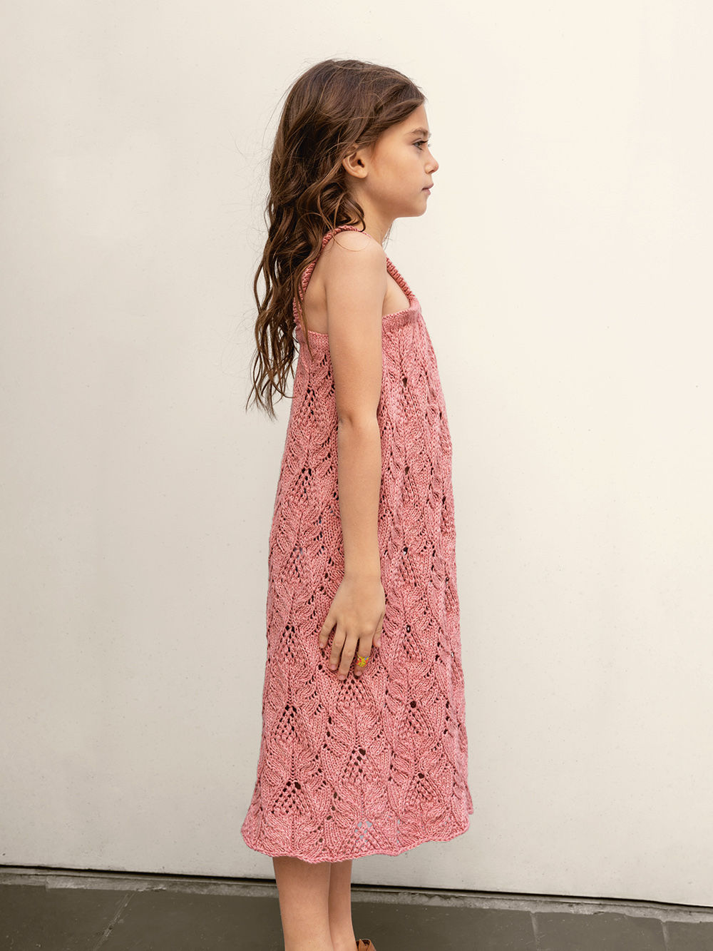 Kjolen strikkes ovenfra og ned. Først legges det opp masker til en kant som strikkes rundt i glattstrikk. Deretter økes det masker og kjolen strikkes rundt i mønster etter diagram til ønsket lengde. Stroppene strikkes til slutt og sys til kanten øverst.