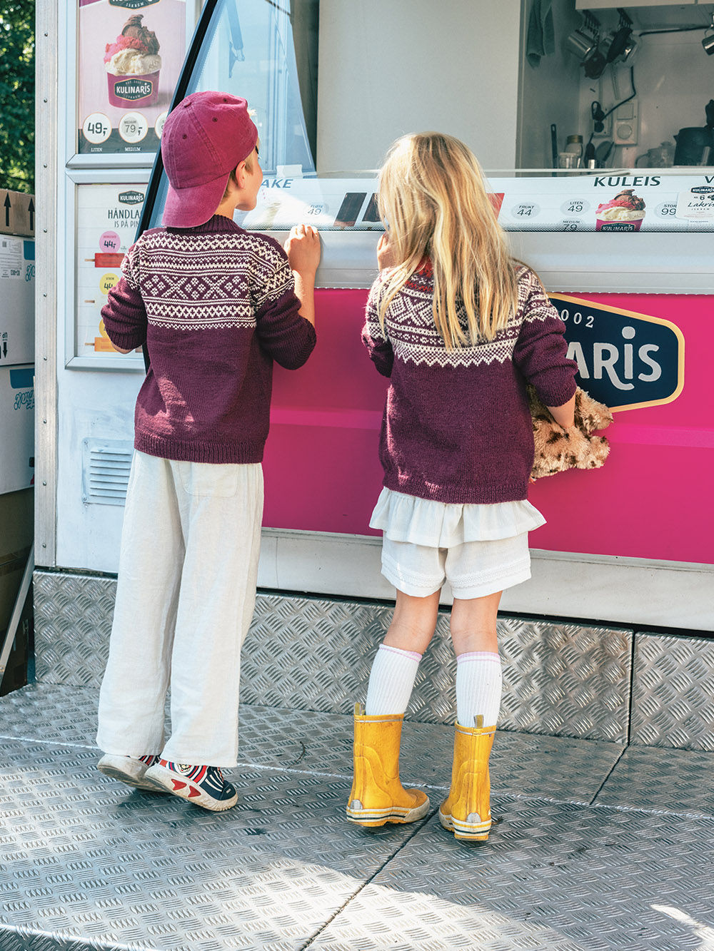 Denne genseren får du oppskrift på både ovenfra og ned – og nedenfra og opp. Velg den varianten du liker best. Bærestykket strikkes i glattstrikk med mønster etter diagram.