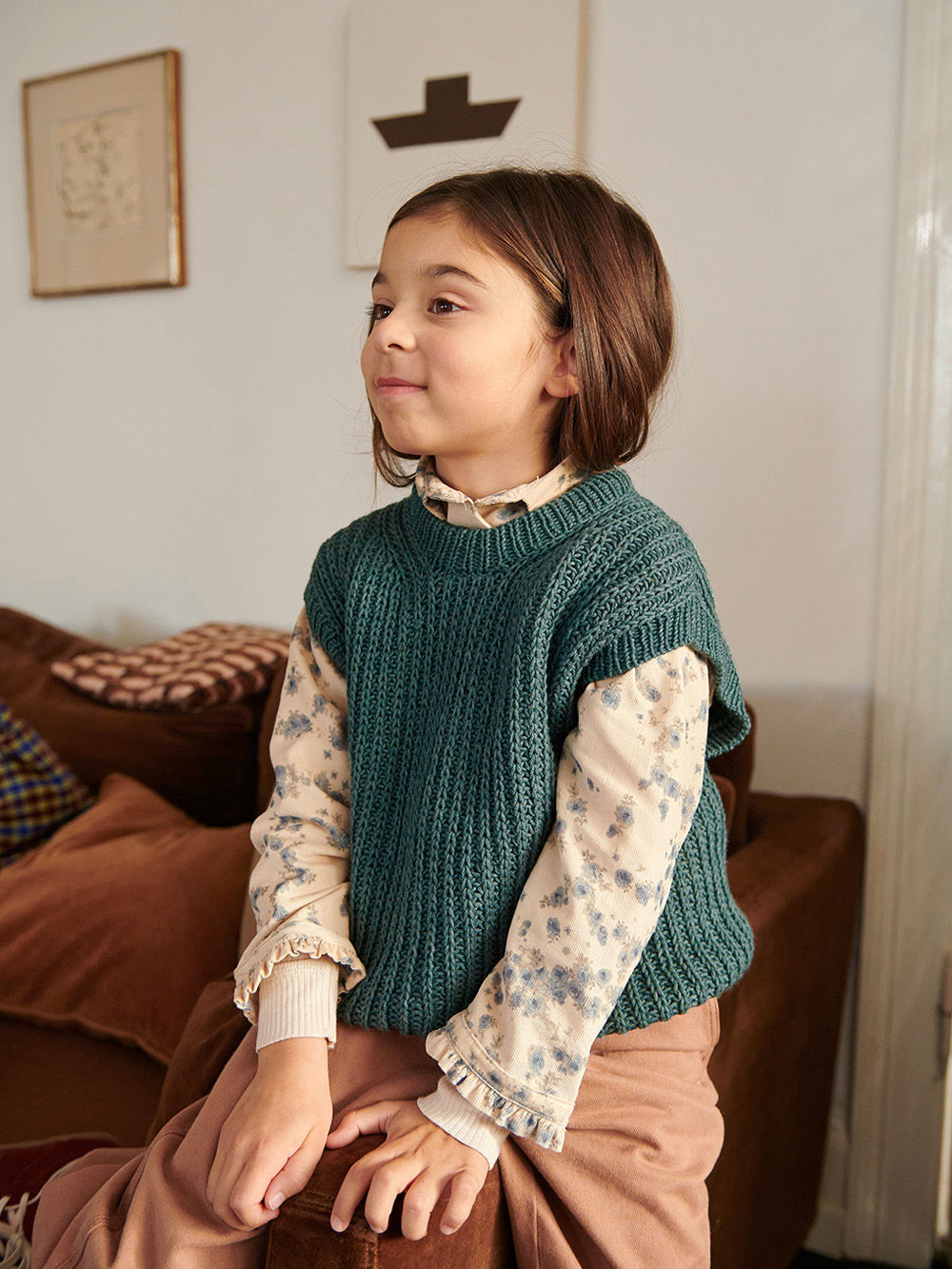 Vest strikket i halvpatent.