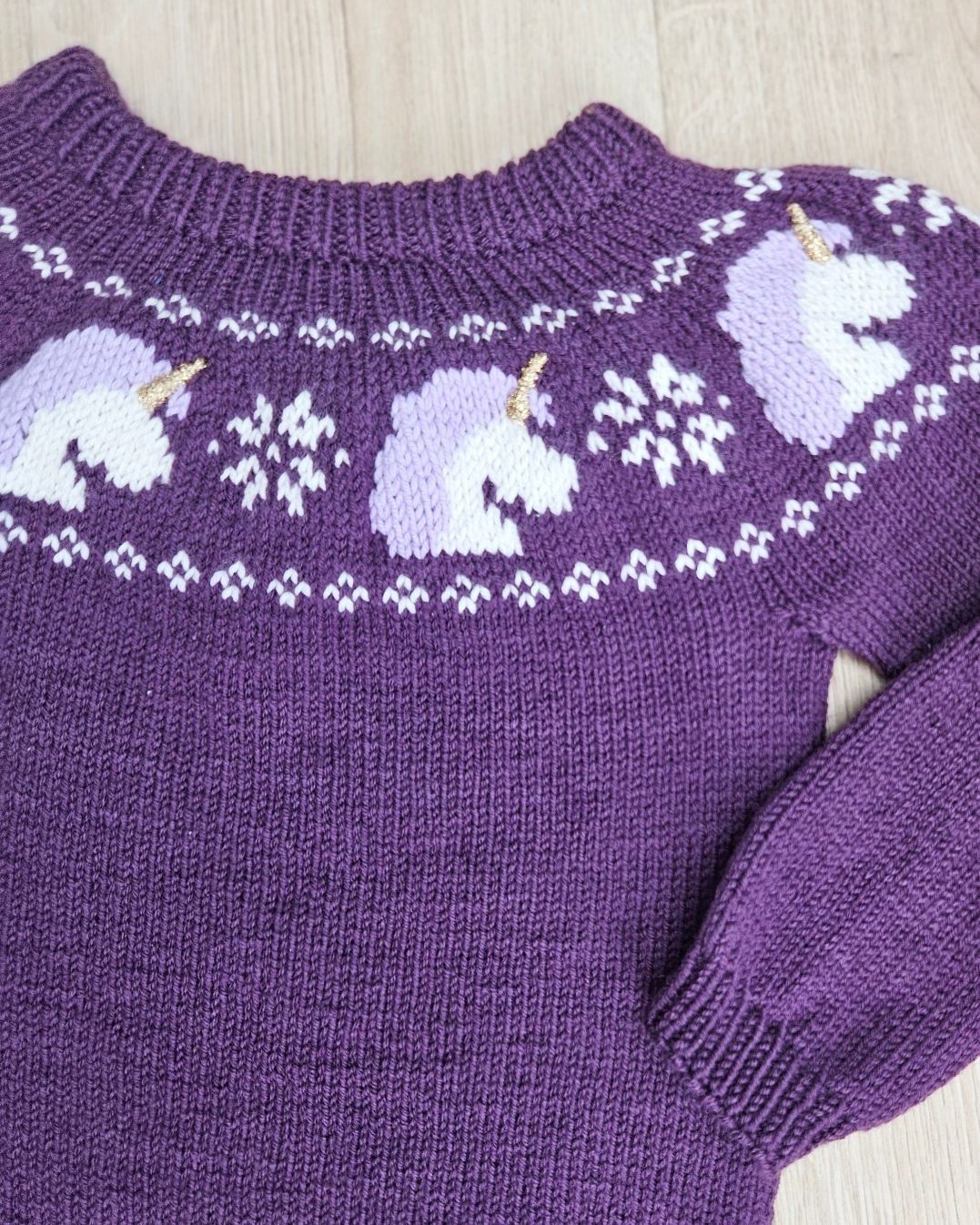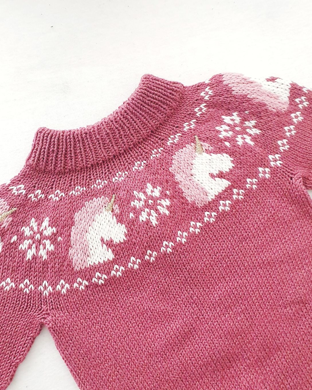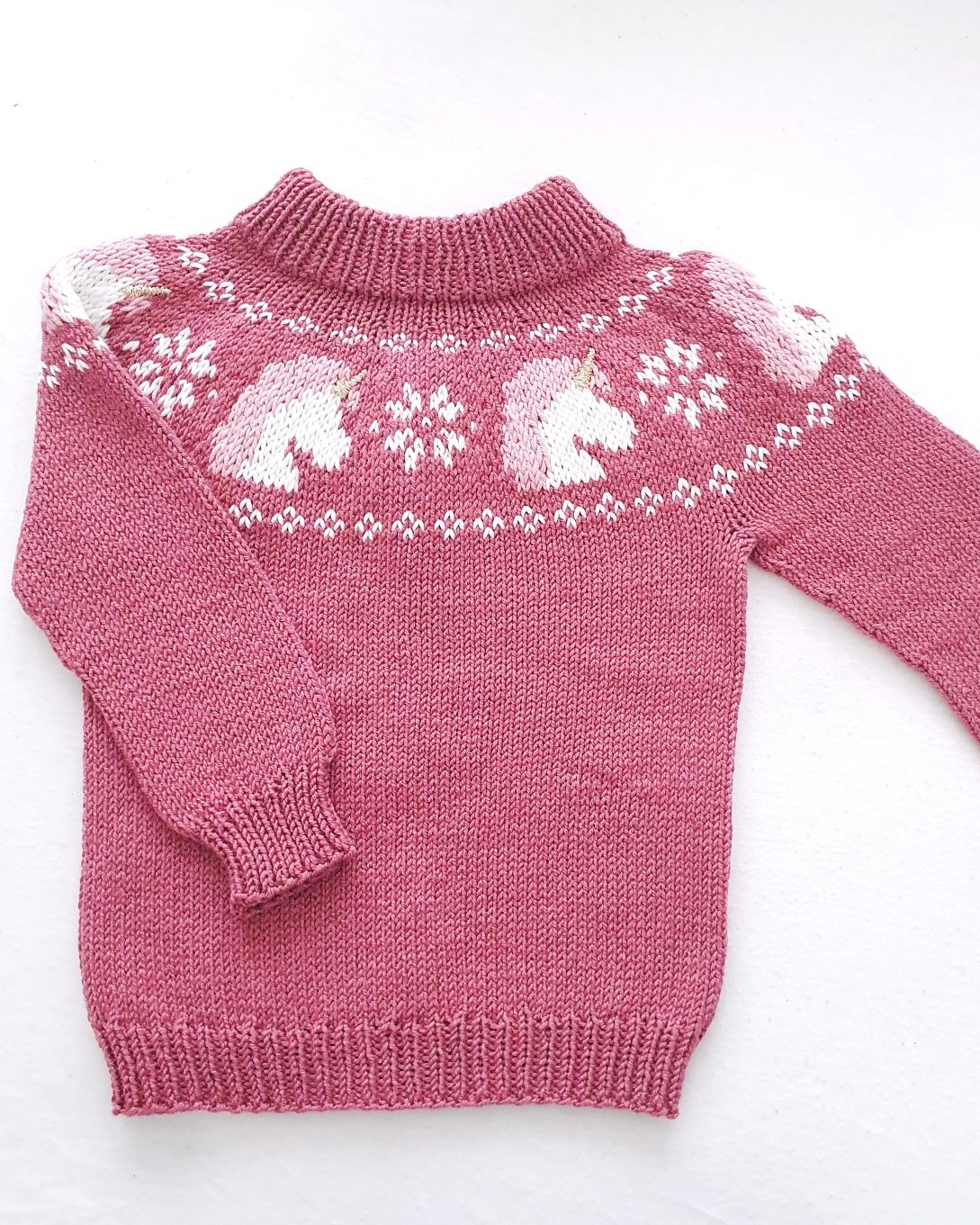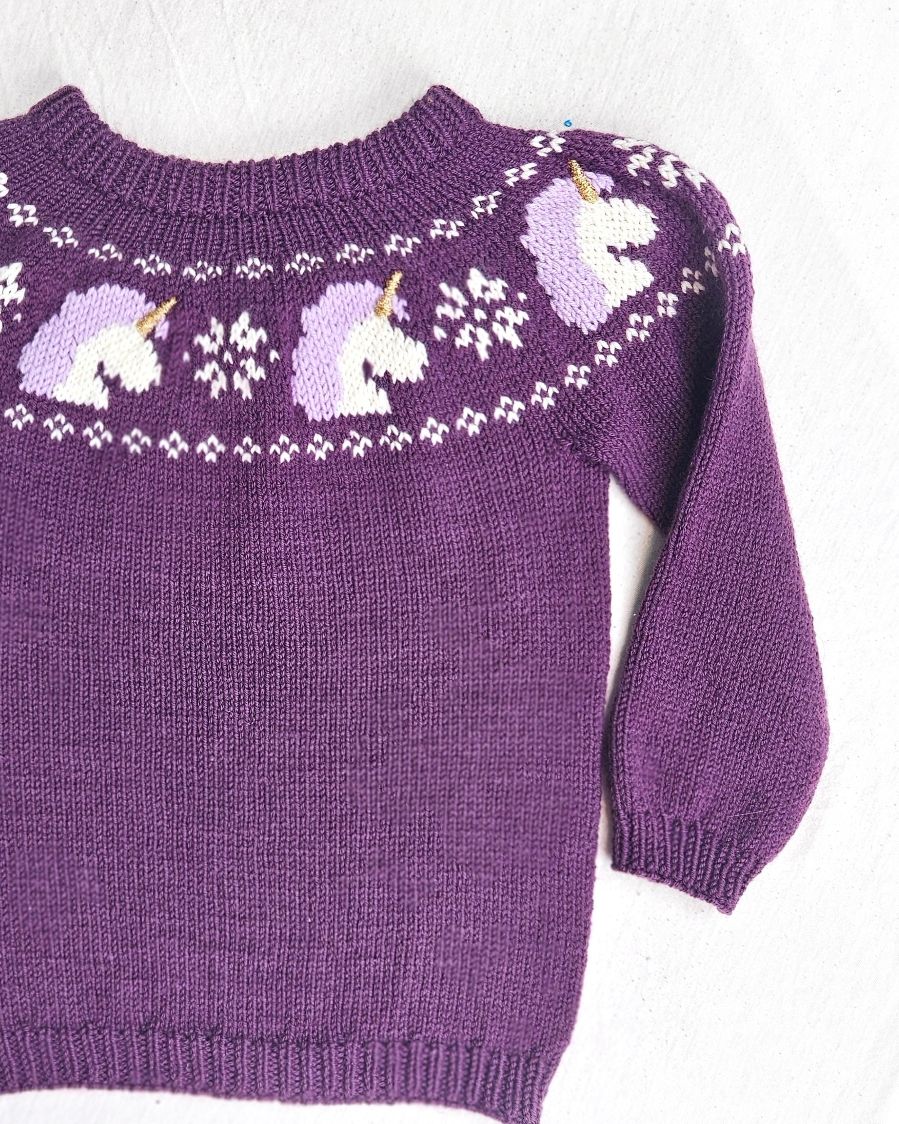 Enhjørninger hører ikke bare til i eventyr – de hører til på den mykeste genseren du kan strikke til de minste i livet ditt. Perfekt til høst, vinter og alt imellom.