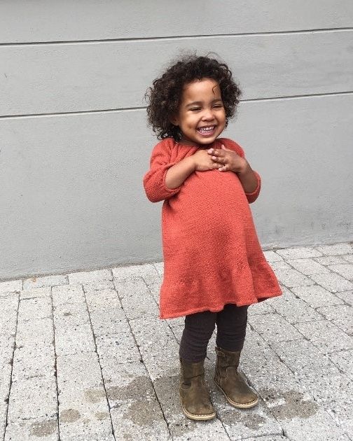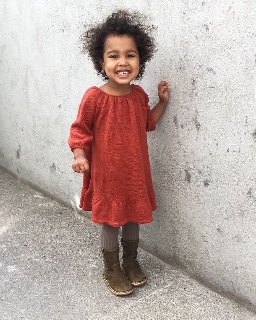 Den løse passformen gjør at kjolen er god for barnet å leke og bevege seg i.