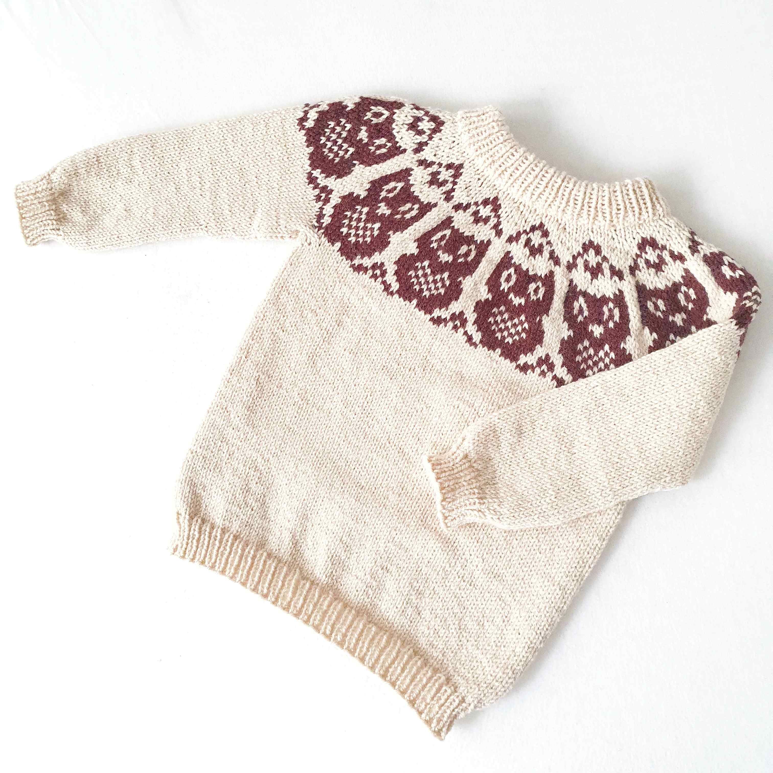 Barnas uglegenser er en sjarmerende genser med søte ugler på bærestykket. Den strikkes ovenfra og ned i Sandnes Double Sunday, som gir et mykt og jevnt uttrykk – perfekt for barn i alle aldre. En klassisk genser med det lille ekstra