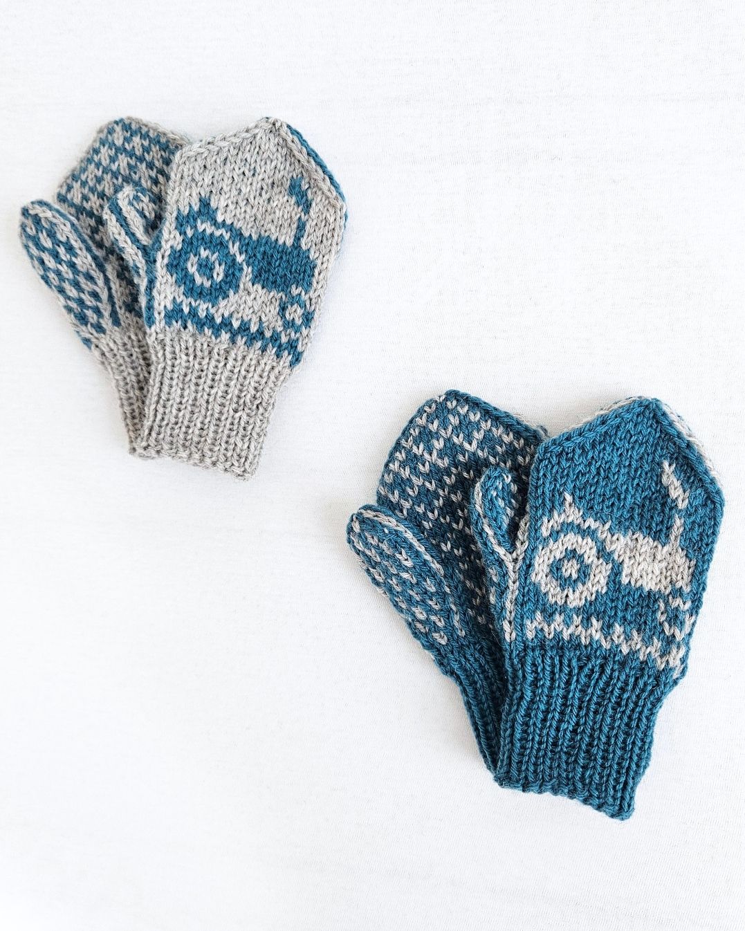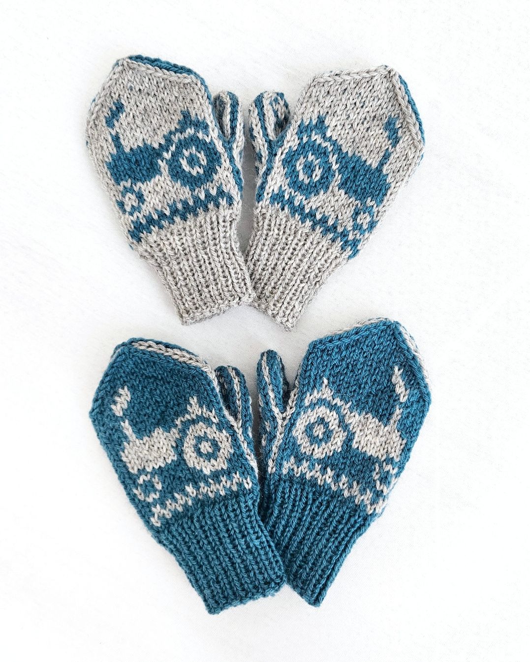 Bestemors traktorvotter er lekne og magiske barnevotter. Vottene strikkes i klassisk ullgarn.
