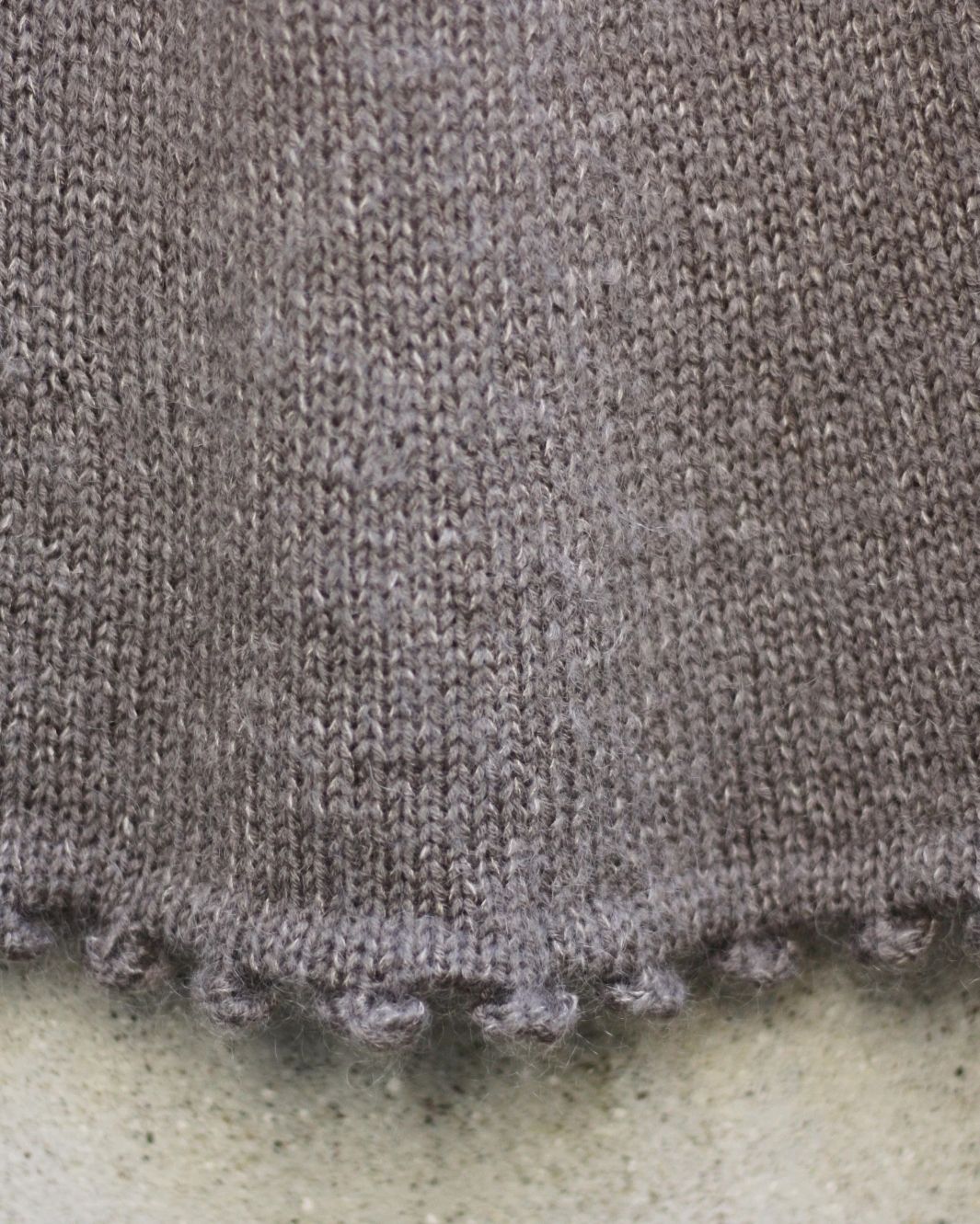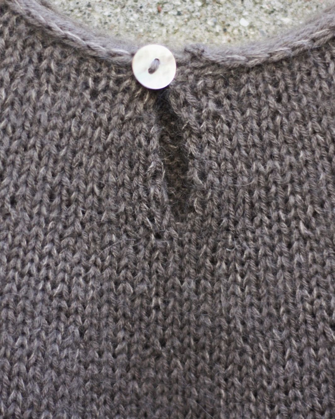 Modellen på bildet er strikket i Merino og Soft Silk Mohair – Støvet Elg