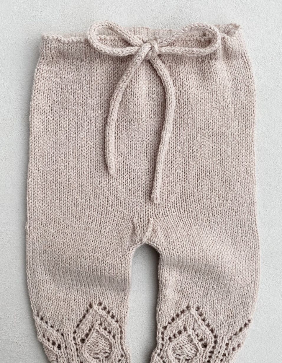 Buksene på bildet er strikket i Merino - Pudder