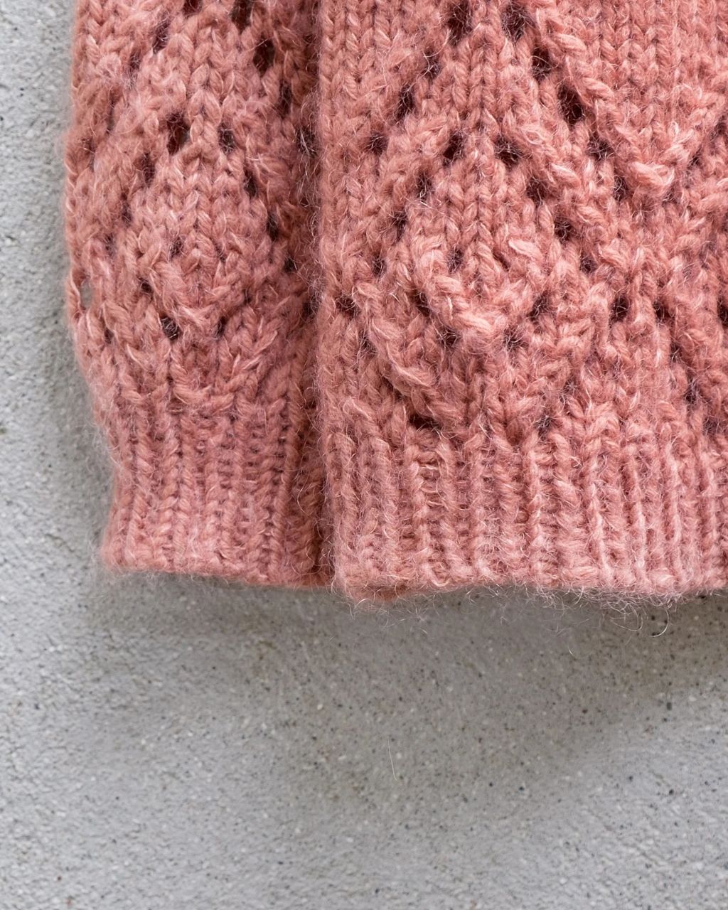 Clotilde genseren er en myk genser i et grafisk hullmønster. Genseren strikkes i en tråd Heavy merino og to tråder soft silk mohair.
