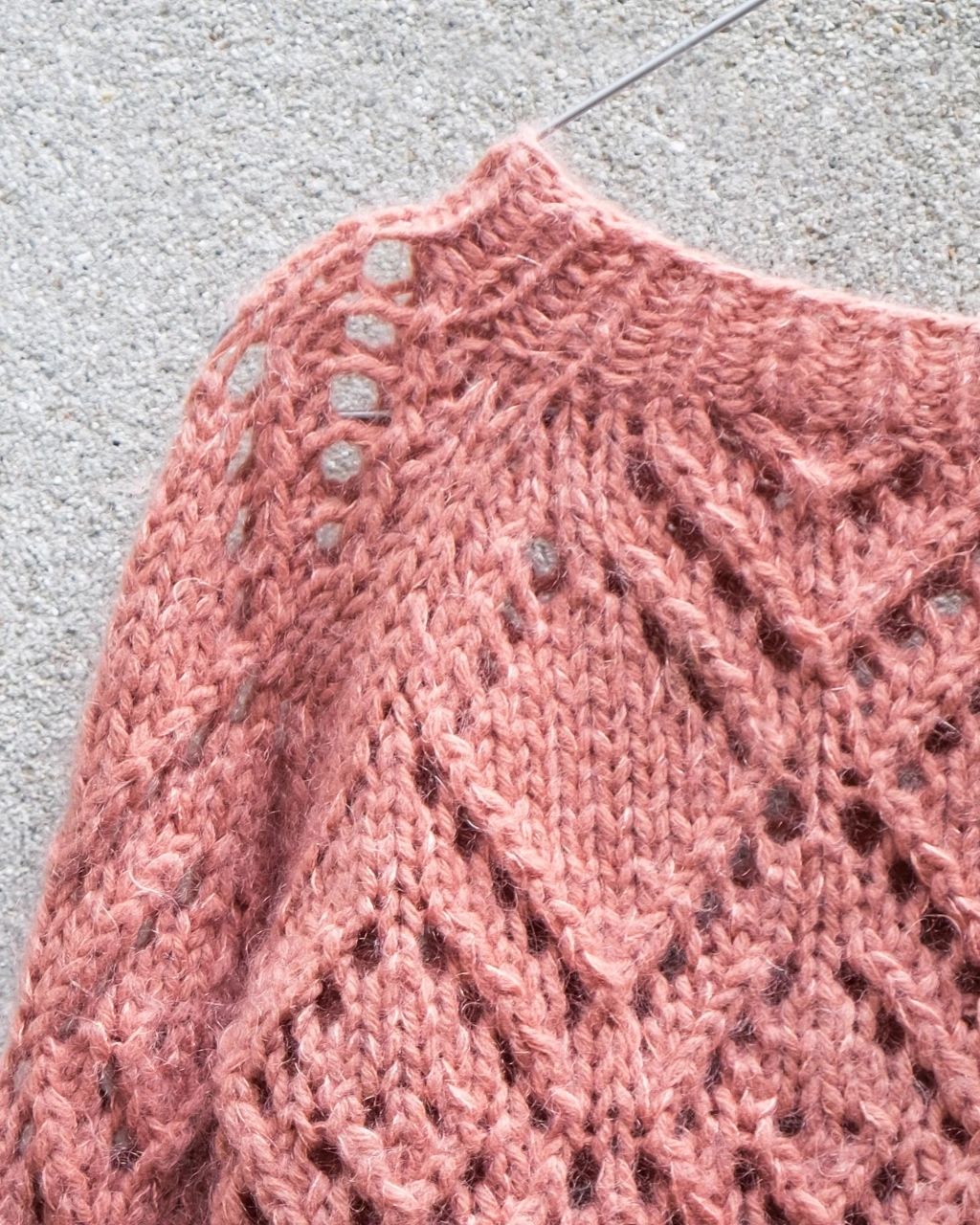 Genseren på bildet er strikket i Knitting for Olive Heavy Merino - Terracotta Rosa og Soft Silk Mohair - Flamingo
