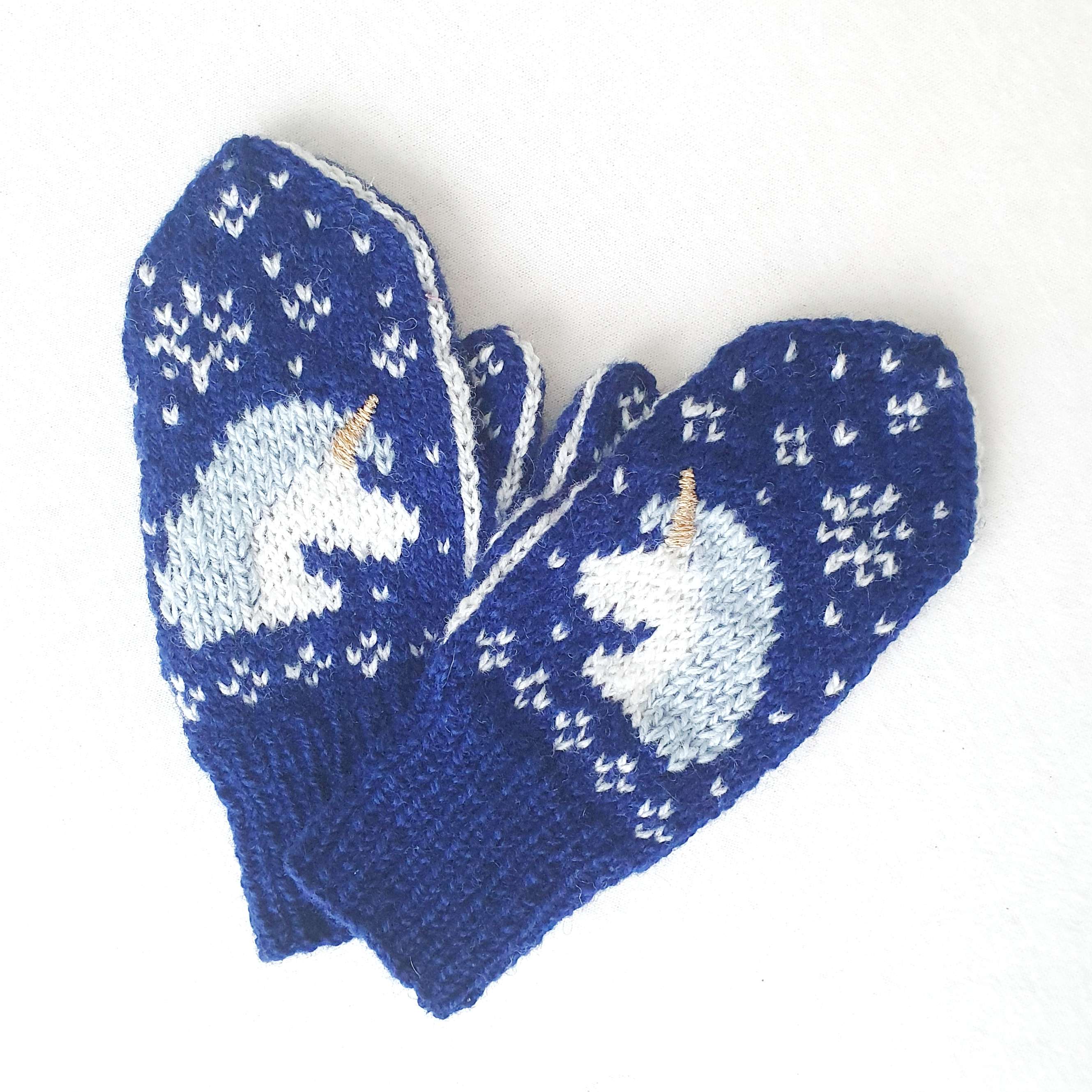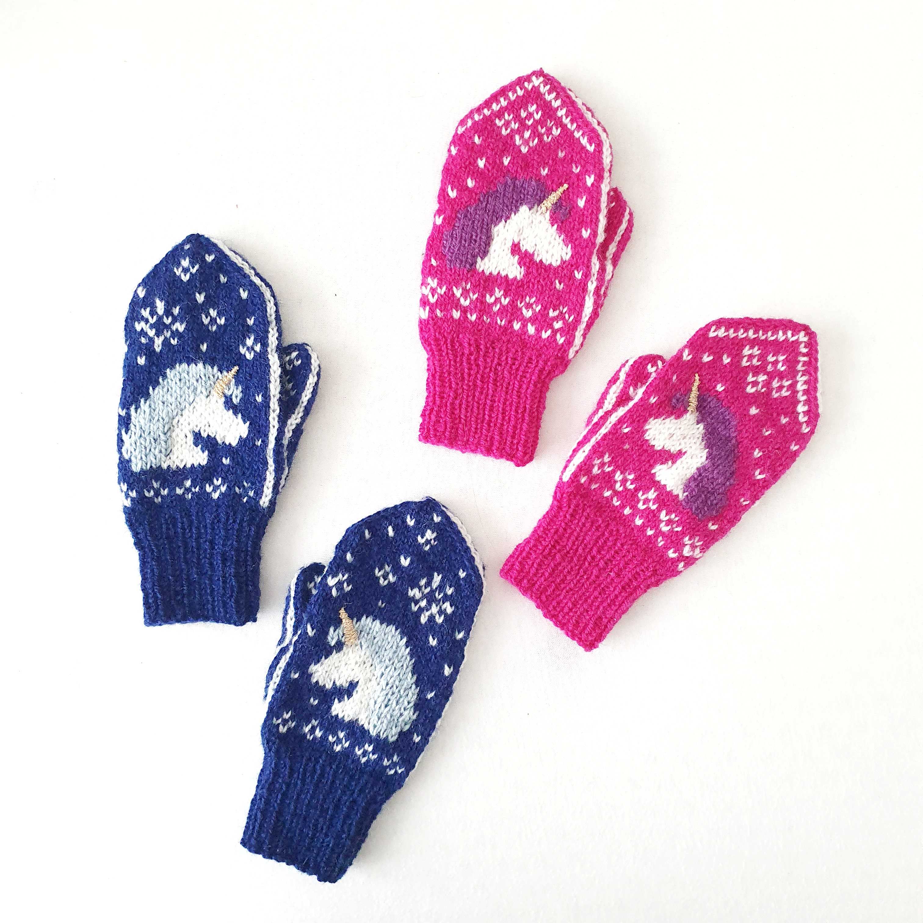 Vottene på bildet er størrelse 3-4 år strikket i Rauma Finull med 2,5 mm over vrangborden og 3,0 mm over diagrammene. Samme pinnestørrelser kan passe til 1-3 år, mens 4-6 år kan trenge 3,0 mm til vrangbord og 3,5 mm til diagrammene. Velg mellom strømpepinner eller Magic Loop.