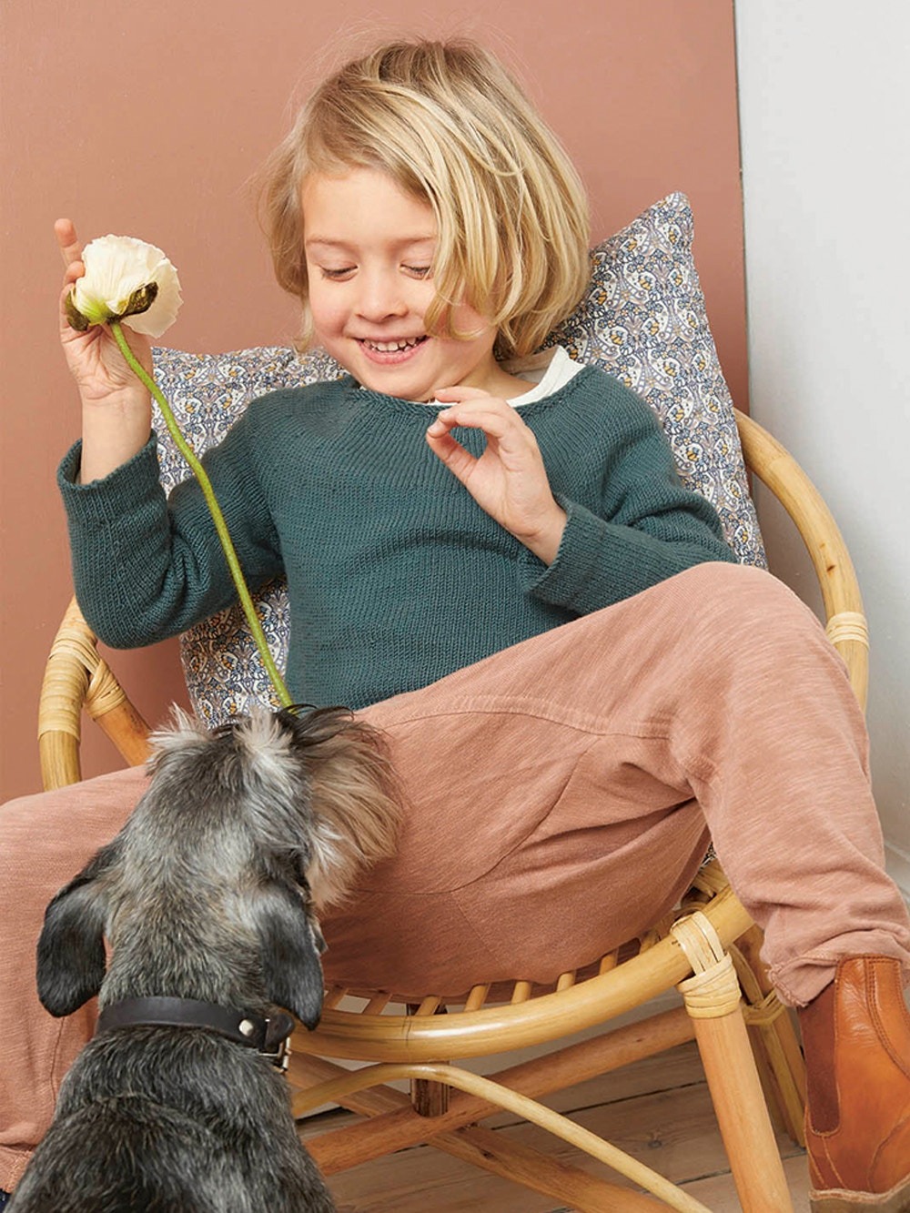 Lekegenser strikkes i Tynn Merinoull nedenfra og opp med felling til raglan.