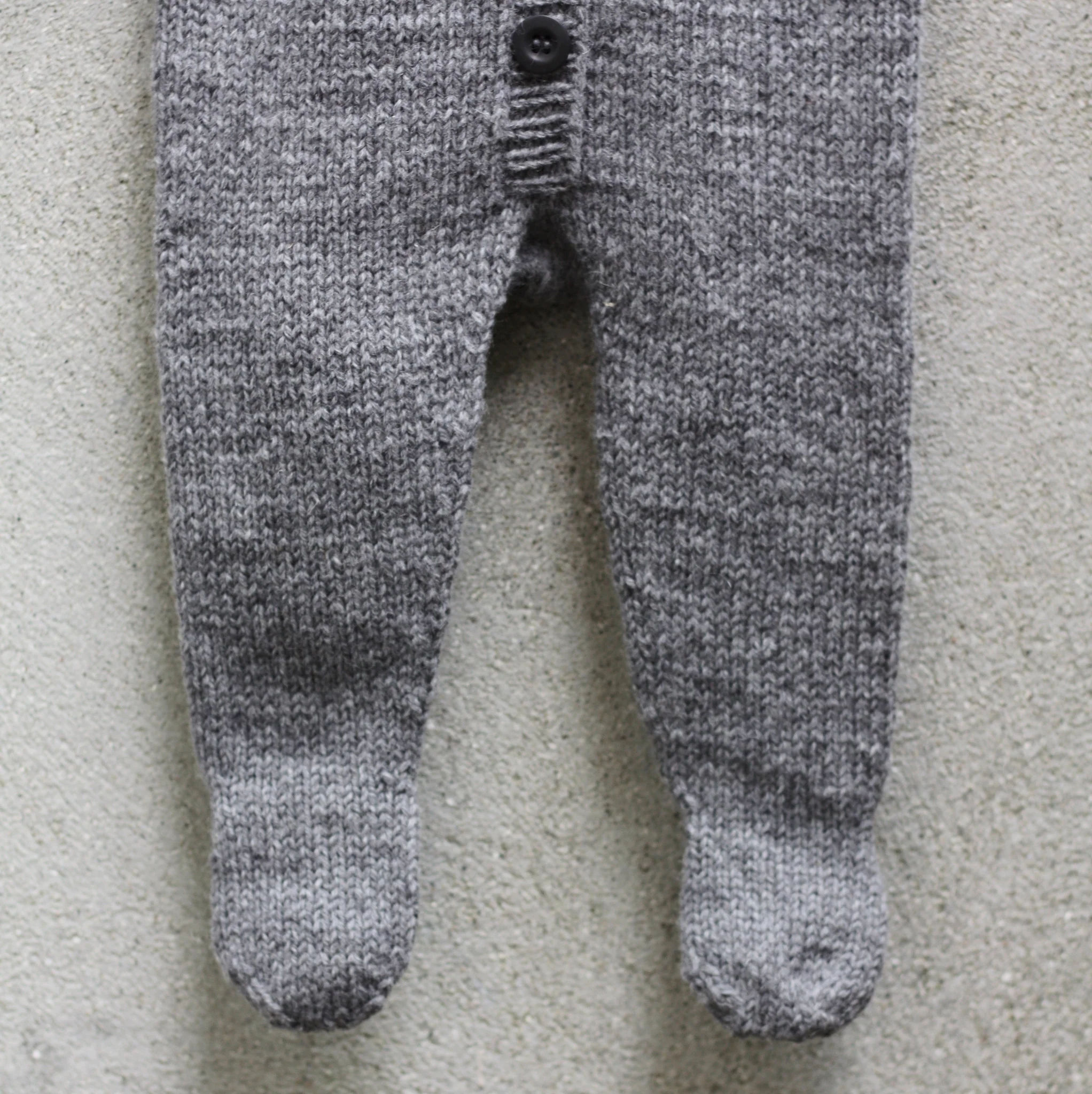 Drakten kan strikkes med føtter opp til størrelse 12 måneder, eller man kan avslutte med en ribbkant.