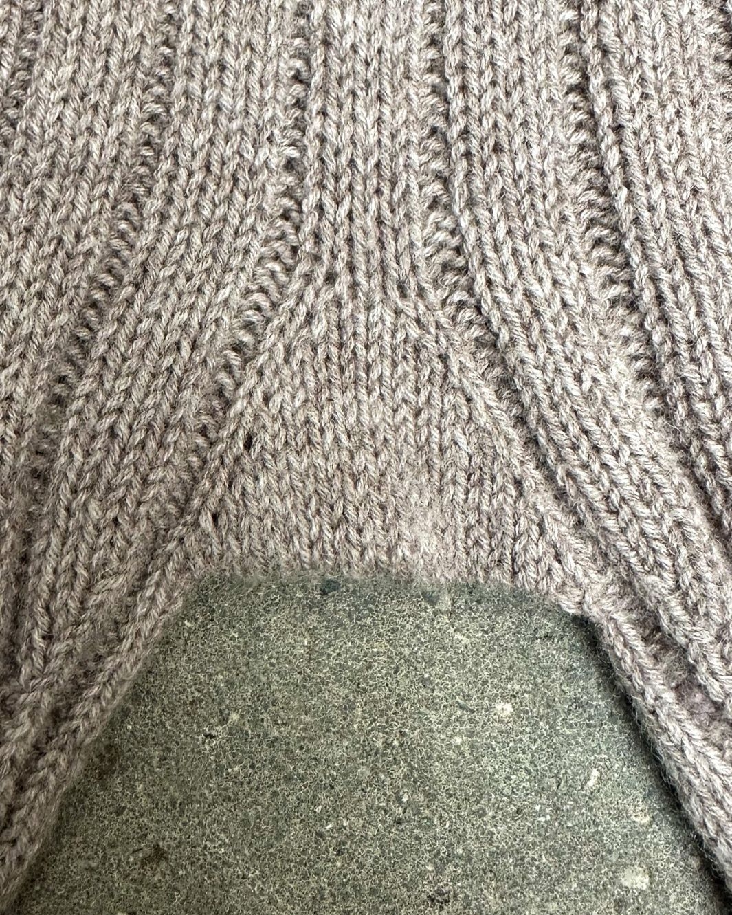 Strikkefasthet: 33 m x 46 rekker = 10 x 10 cm på pinne 2,5 mm i 4 x 2 ribb etter vask og blokk
