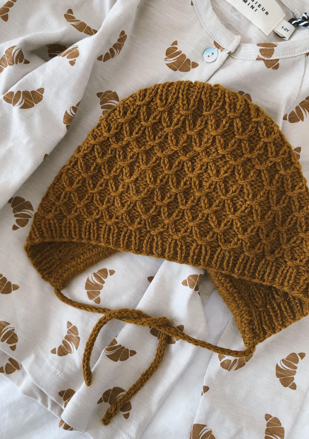 Karens Kyse strikkes frem og tilbake i smockstrikk fra pannestykket og bakover. Maskeantallet økes gradvis fra pannestykket og bakover, slik at kysen slutter tett og godt om hodet. Bakhodet strikkes på strømpepinne med fellinger. Til slutt strikkes en løpegang til et bindebånd langs halskanten.