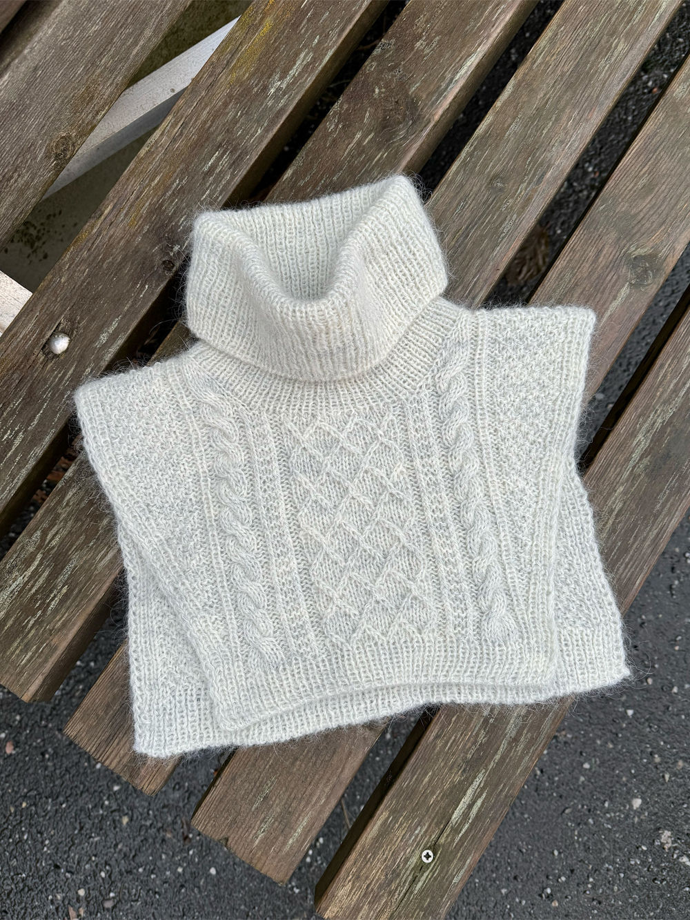 Moby Neck strikkes i strukturstrikk fra bakstykket opp mot skuldrene og ned over forstykket.