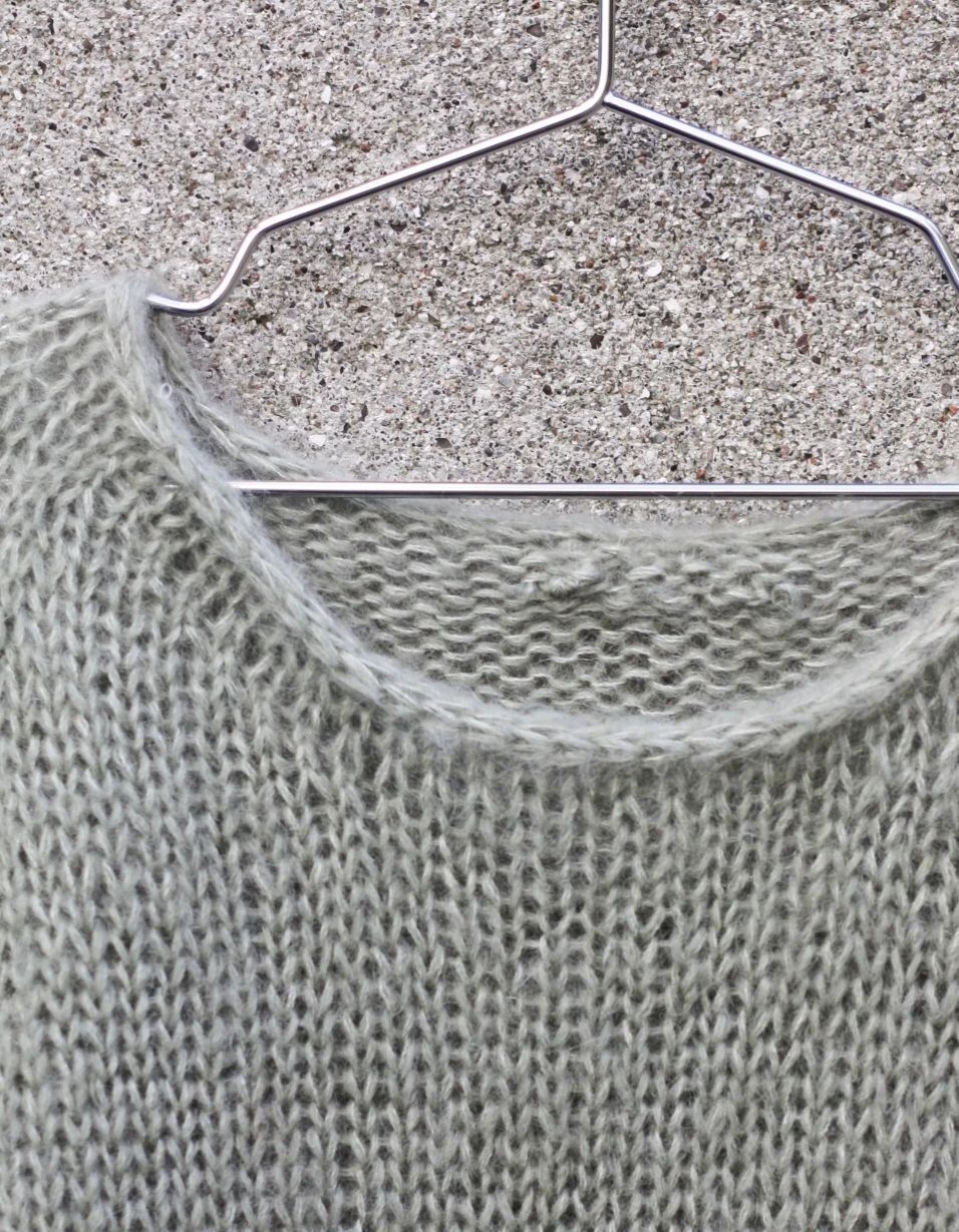 Genseren på bildet er strikket i Soft Silk Mohair i fargen Støvet Artiskok